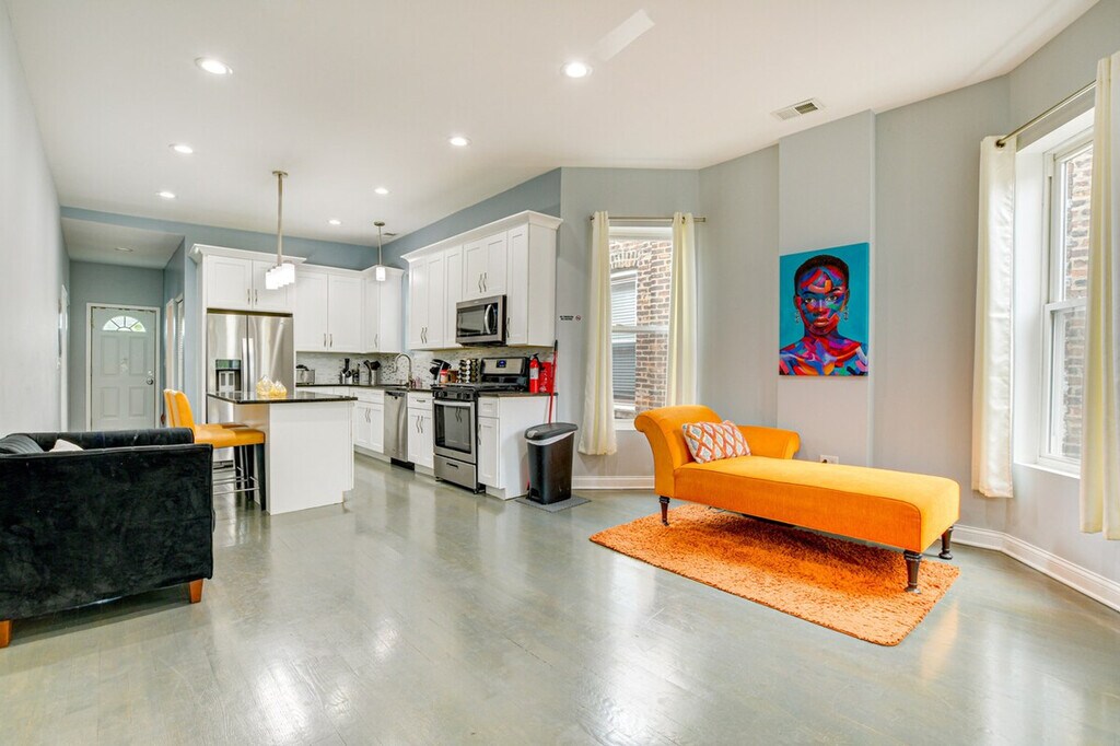 Explore the city’s one-of-a-kind attractions and experiences like a local when you stay at this 3-bedroom, 1-bathroom vacation rental in Chicago. Whether you want to take a spin on the Ferris wheel at Navy Pier, snap a photo with The Bean, or grab some deep-dish pizza, this condo lets you do it all. Once you’ve had your fill of city lights, return home to the comfort and convenience of a Smart TV, in-unit laundry, and a well-stocked kitchen. Your Windy City adventure awaits. The property requires stairs to access and offers street parking on a first-come, first-served basis. This apartment features a Smart TV, a laptop-friendly workspace, and a shower/tub combo. The kitchen is well equipped with a stove, oven, microwave, dishwasher, refrigerator with ice maker, dishware, flatware, spices, a drip coffee maker, and a kitchen island with a breakfast bar that seats two. Additionally, the apartment includes a washer and dryer, linens, towels, complimentary toiletries, and central air conditioning and heating. The backyard is available upon request. If you would like to use it, please reach out to the Guest Contact to request. An additional property is available on-site with a separate nightly rate. If you would like to reserve both or multiple rentals, please inquire for more information prior to booking. Located in Chicago, this apartment provides easy access to the city’s iconic attractions. Whether you're visiting Navy Pier, The Bean, or indulging in some deep-dish pizza, you'll find yourself perfectly positioned to enjoy all the city has to offer. The property enforces a no-smoking, no-pets, and no-parties policy. Guests must be at least 25 years old to book. Additional fees and taxes may apply, and a photo ID may be required upon check-in. The property features four exterior security cameras that are outward facing and do not look into interior spaces. The homeowner lives on-site in a completely separate unit and may be present during your stay. There is another bookable vacation rental on-site, so other travelers may be present during your stay. The apartment includes a laptop-friendly workspace, making it ideal for remote work. Registration Number: R2 [SI]