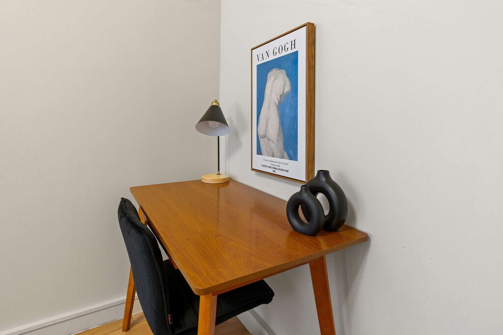 This is a great opportunity to live in one of the best neighborhoods in Manhattan, near Nomad, Union Square, and Gramercy Park. The apartment features two bedrooms that comfortably accommodate a queen bed, an office chair, and a large desk. Recently renovated, everything is brand new, and there are also two full bathrooms and generous closet space. Enjoy a quiet and comfortable stay with thoughtful touches to enhance your experience, such as two 50" flat-screen TVs, luxurious linens, plush towels, and a fully stocked kitchen featuring a refrigerator, oven range, microwave, and coffee maker. There's also a hairdryer and an iron/ironing board available. The apartment provides free high-speed wireless internet, allowing guests to easily work from home and stay connected during their stay. A one-time pet fee of $415 applies. Laundry facilities are available down the building. Nearby attractions include Trader Joe's, AMC, and Fairway. For transportation, the bus is on 2nd Ave, and the 28th Street Station (number 6) is easily accessible. There's also a bike lane on 2nd Ave. The apartment provides free high-speed wireless internet, allowing guests to easily work from home and stay connected during their stay. [SI]