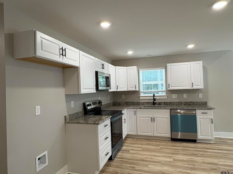 Be the 1st one to call this NEW 2025 built home HOME!!! 3 bedrooms, 2 baths with a huge back yard! Kitchen and baths have granite countertops, ceiling fans in every room, vinyl plank floors throughout, window blinds throughout. Nonaggressive breed pets allowed for $25 per month each as pet rent. Located in a gated Lake Palestine community with boat ramp access, fishing and swimming pool in Bullard ISD