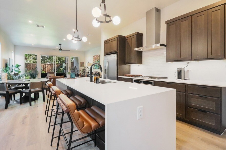 Elegant and spacious 3 bed 2.1 bath 2022-build on the Sante Fe Trail in Dallas! Interior features include gorgeous luxury vinyl plank flooring, extra-tall ceilings, and custom over-sized windows letting in lots of natural light throughout; open kitchen with quartz countertops, huge island with large undermount single-basin sink, tile backsplash, spacious butlers pantry, tons of cabinetry, and stainless-steel appliances including fridge. Large master bedroom boasts walk-in closet with tons built-in of shelving, dual sinks in bath, garden tub, and luxurious glass shower enclosure. Mega-capacity washer and dryer set also included. Exterior features include large back patio, gorgeous landscaping, and fully fenced-in yard. Also, a newly-built park directly across the street includes full basketball court, playground, and a concrete bike path. Located just minutes from downtown Dallas, White Rock Lake, and Deep Ellum. Landlord requirements include a min 640 credit score, income 3x monthly rent, clean background and rental history with no previous evictions, convictions, or broken leases. Small pets okay on a case-by-case basis.