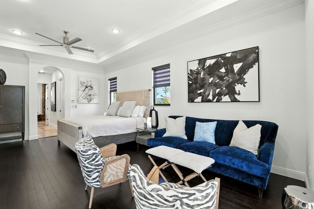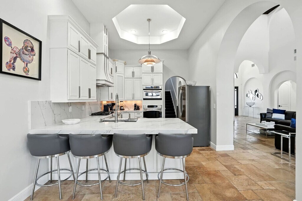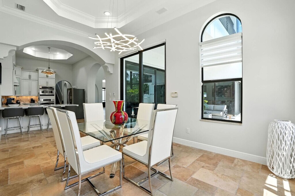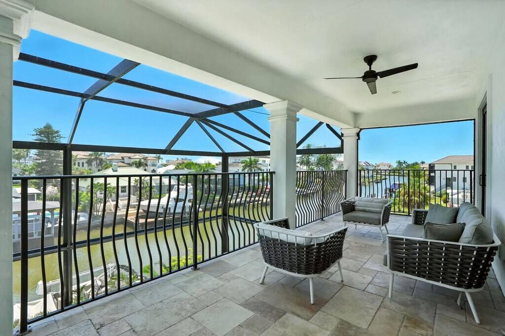 Experience waterfront luxury and feel at home in this stunning Naples home in Conners at Vanderbilt Beach. This property features soaring ceilings, a gourmet kitchen, a heated pool with spillover spa, and expansive balconies with sweeping canal views. With 3,500 square feet, this home accommodates up to 12 guests. This beautifully appointed waterfront home offers elegant indoor spaces and a private, resort-style outdoor oasis. The open living space soars to the second floor and features an oversized leather sectional, a wall-mounted TV, and an electric fireplace. The fully equipped kitchen features quartz counters, a gas range, premium stainless steel appliances with a mini fridge and an island with 4 barstools. The garage is outfitted with 4 cruiser bikes with helmets, 10 beach chairs in adult and children’s sizes, 5 coolers in various sizes, 2 beach wagons, 4 beach umbrellas and a large canopy for shade. The lift (open elevator) in the garage is available for guest use with a signed waiver prior to occupancy. Just minutes from the Mercato, Waterside Shops, white-sand beaches, and fine dining, it’s the perfect blend of indoor elegance and outdoor relaxation. It is best to have a vehicle, as Naples is a large metro area. This property is about a 35-minute drive to the Fort Myers Int'l Airport. Quiet hours are between 10 PM and 8 AM. There is a vacant lot directly next to the home that will have construction of a new home at an unknown period of time. Registration Number: Florida state permit number: #DWE2102775 [SI]