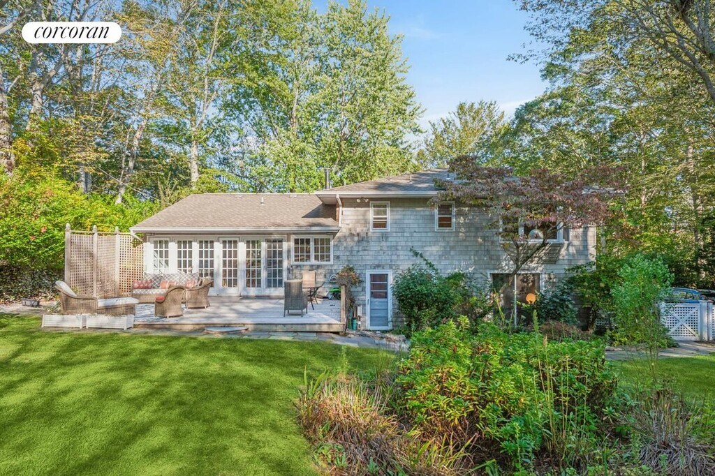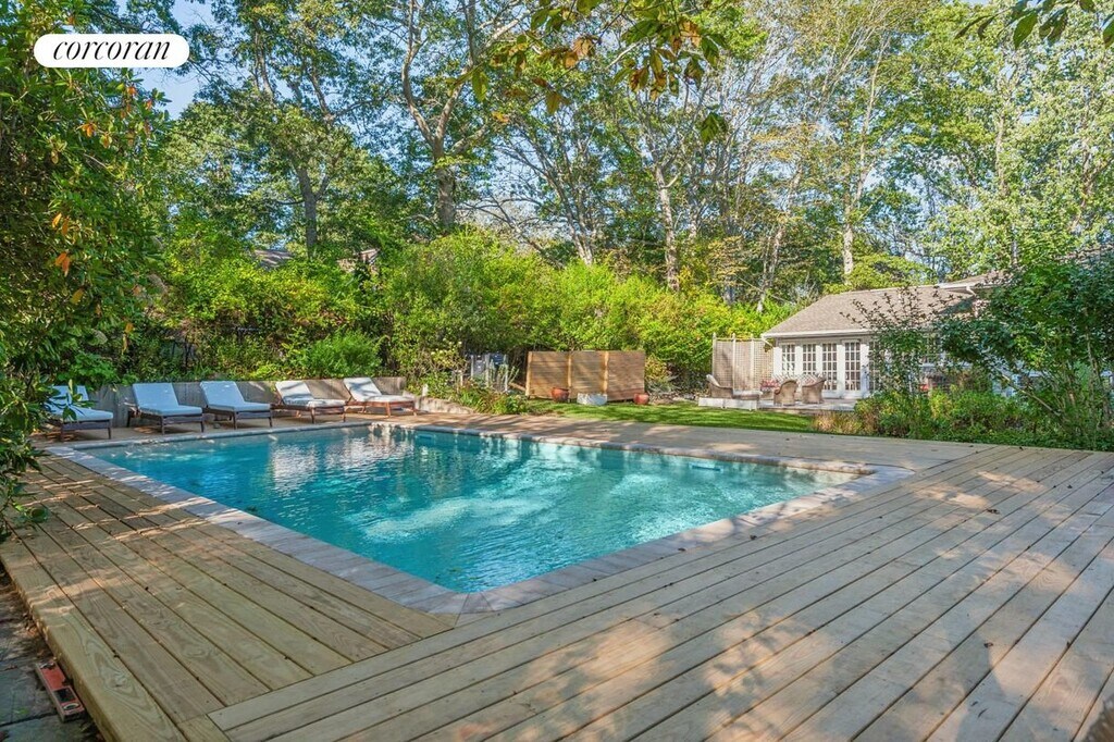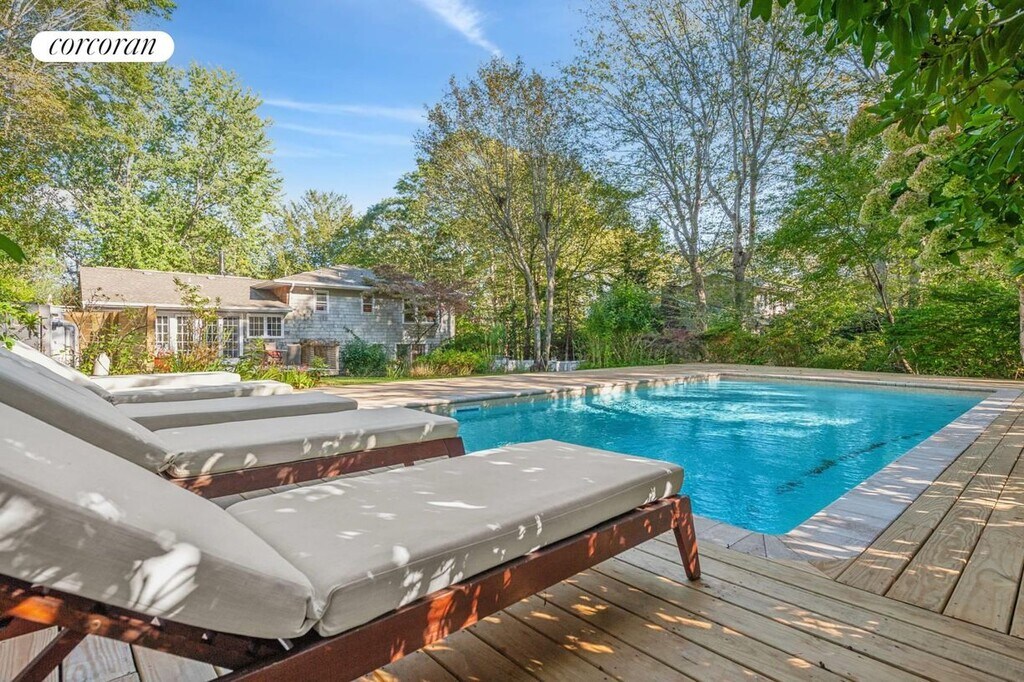 Contemporary elegance and charm recently renovated.Nestled in an ultimate location, you'll enjoy easy access to the charm of Southampton Village (3.4 miles), the allure of Bridgehampton (5.6 miles), the quaintness of Sag Harbor (9.1 miles), and the vibrancy of Manhattan (94.3 miles). Despite its secluded feel, this property is perfectly positioned offering unparalleled convenience to the finest amenities. Indulge in upscale shopping, acclaimed dining destinations, and the exclusive lifestyle that comes with this prestigious address. In the comfort of Central Air-Conditioning, a newly renovated open kitchen, 3 Bedroom (two king beds and one queen) /2.5 (renovated) baths; Primary en-suite with radiant heat bathroom floor, plus additional 2 Bedrooms, 400 sq foot bonus media room with very large TV, Cathedral Living Room open floor plan to dining and French Doors to Front yard and back yard. In a private lush lawn with perennial flowering garden throughout the summer is a heated pooi with ample chaise lounges, outdoor dining and outdoor living room. Separate first floor Laundry Room with Exterior Access to backyard and pool.. [[Rental Registration # RP251894]]