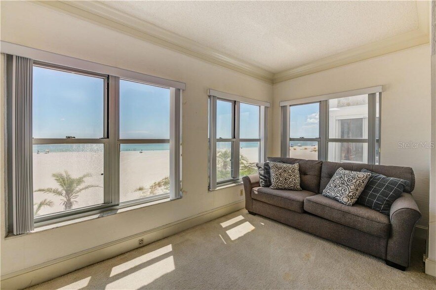 Direct beachfront condo on award winning St Pete Beach. Very open floorplan with beautiful views. Condo is fully furnished and available immediately. The Beau Monde has been recently renovated and has many amenities such as heated beachfront pool, fitness center with sauna and showers, tennis courts, covered parking, and BBQ area. Booked 2/27/2026-5/27/2026. $4,000/month starting 11/1/2025. 3 month minimum rental. Rent includes Water, sewer, trash removal, high speed internet, basic cable, electricity.