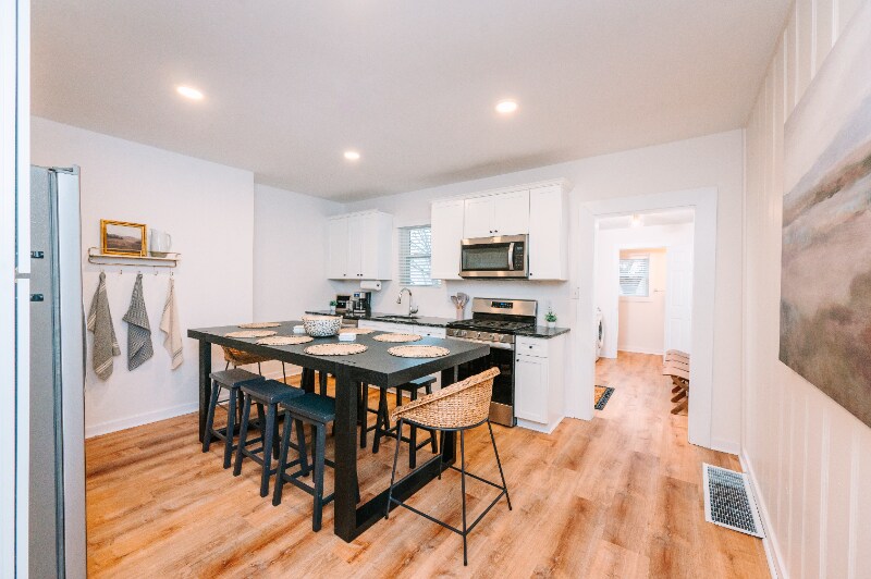 Property Id: 1372329 Spacious 3-story home with excellent city views Pet-Friendly (for a fee) | 6 Queen Beds | Local Landlords Lease Term Negotiable Welcome to our newly renovated 3-story home in the heart of Fineview, a historic district offering breathtaking views of downtown Pittsburgh, just a short walk away. Perfectly situated for easy access to downtown, the North Shore (stadiums & casino), and all that Pittsburgh has to offer, this stylishly designed home is ideal for groups or families seeking comfort and convenience. Property Highlights: Pet-Friendly: We welcome your furry friends! A $149 monthly pet fee applies, and pets must be well-trained. Additional Lot: Lease comes with 3 Cemetery Ave; an adjacent grass lot for recreational activities / pets/ Ample Parking: Free and accessible street parking with plenty of spots available. Prime Location: Just 5 minutes by Uber to the north shore, with incredible city views a short walk from the house and along the way to the North Side. Comfortable Sleeping Arrangements: Bedroom 1 (Floor 2): Two queen bunk beds (4 queen beds total) Bedroom 2 (Floor 2): One queen bed Bedroom 3 (Floor 3): One queen bed Stylish & Functional: Double vanity setup that doubles as a makeup station or workspace. Entertainment Ready: Living room with a 70-inch 4K ROKU TV, perfect for movie nights or streaming your favorite shows. Modern Amenities: Central air conditioning and heating, a fully equipped kitchen with coffee machine, cookware, dishes, and silverware. Dining & Relaxation: Enjoy meals at the massive 84-inch dining table that seats 8, and relax on the front porch or back deck with yard access. Convenience: Fast WiFi for all your connectivity needs, washer/dryer on the first floor, and vintage stadium seating near the laundry area for a touch of nostalgia. Local Support: Managed by local landlords, a dedicated management team is just minutes away to assist with any issues that may arise during your stay.