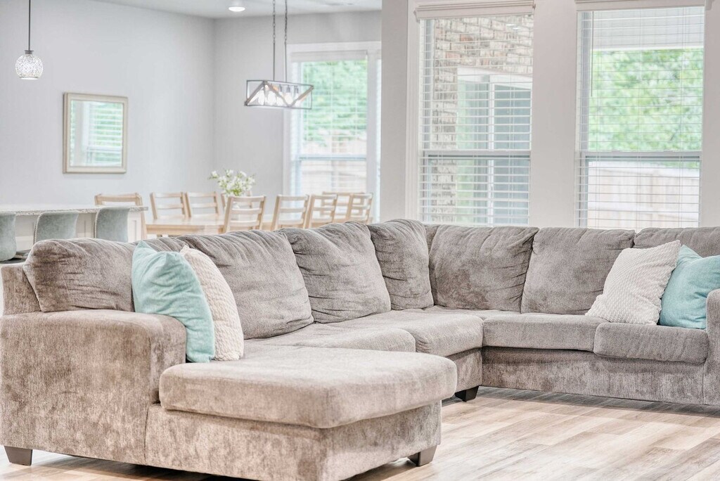 Experience the ultimate adventure getaway in this spacious 5-bedroom, 3-bathroom home, perfectly situated on a quiet cul-de-sac just minutes from the Back 40 and Little Sugar mountain-bike trails. With 2,500 sq ft of living space, this home is ideal for multi-family stays, offering comfort and convenience for all. Nestled on a peaceful street, this home features a king-bed primary suite with an ensuite bath, three guest rooms with queen beds, and a bunk room with two twin-over-full bunks. Enjoy the open-concept kitchen with stainless-steel appliances and granite countertops, flowing into a bright dining area and cozy living room with a stone fireplace. Stay entertained with smart TVs and high-speed Wi-Fi, and take advantage of the dedicated workstation with a standing desk for remote work. Guest passes for community pool access are available upon request. A pet fee applies for up to two pets, and the 3-car garage provides secure storage for bikes, kayaks, or golf clubs. Located in the heart of Bella Vista, this home is just minutes from mountain-bike trailheads, golf courses, and community lakes. Explore the Tanyard Creek Nature Trail or visit the Mildred B. Cooper Memorial Chapel. Dining and shopping in downtown Bentonville are easily accessible, and Northwest Arkansas National Airport (XNA) is about 30 minutes away. Quiet hours are from 9 PM to 8 AM to respect the neighbors. Check-in is after 4 PM and check-out is by 10 AM. Smoking or vaping is not allowed inside or on the property, and no parties or events are permitted. Pets are welcome with a paid pet fee, and guests are asked to clean up after them. The property is professionally cleaned and sanitized between stays, and starter supplies are provided, though guests may need to restock for longer stays. Includes a dedicated workstation with a standing desk, ensuring remote workers can stay productive without missing out on the fun. High-speed Wi-Fi is available throughout the home. [SI]