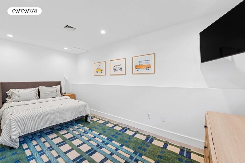This fun, family friendly home is situated on a quiet cul-de-sac, minutes to Southampton village. This 3-level home offers a private tennis court, heated pool, half court basketball, outdoor dining, and abundant entertaining spaces. A dramatic double height entry welcomes you to a sun-drenched living room with cathedral ceiling and fireplace. A large open kitchen with eat in area, opens to a beautiful deck. Additionally, the main floor has two bedrooms and one full and one half bath. On the upper level, you'll find a spacious primary suite with a spa bath and large walk in closet. Two additional guest bedrooms joined by a Jack and Jill bathroom. The walk out lower level is flooded with natural light and has a large entertainment area, with comfortable furnishings. Two additional bedrooms share a full bathroom. All bathrooms are recently renovated. A happy home in a prime location! [[Rental Registration # R25-046]]