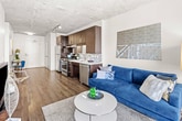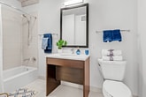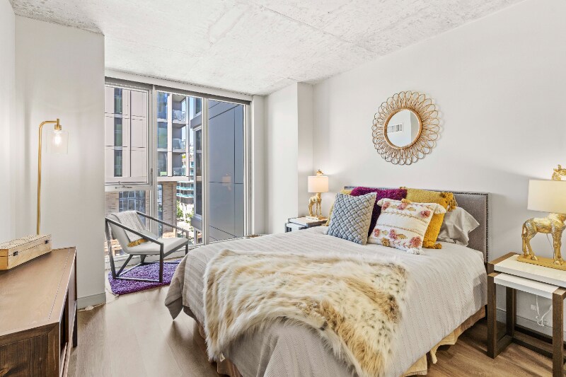 Property Id: 2273293 Discover comfortable city living in this thoughtfully designed 1-bedroom, 623 sq. ft. apartment in West Loop. The spacious open-concept living area features warm wood-style flooring and a flexible layout that easily accommodates both a cozy lounge setup and dining space. A sleek linear kitchen runs along the side wall, offering modern appliances, abundant cabinetry, and efficient workflow for everyday cooking. The large bedroom provides generous dimensions—ideal for a king-sized bed and additional furniture—while a walk-in style closet adds practical storage. The bathroom is conveniently located near the entry, complete with a full tub/shower and modern fixtures. Step outside onto your private balcony, perfect for morning coffee or evening unwinding with skyline views.