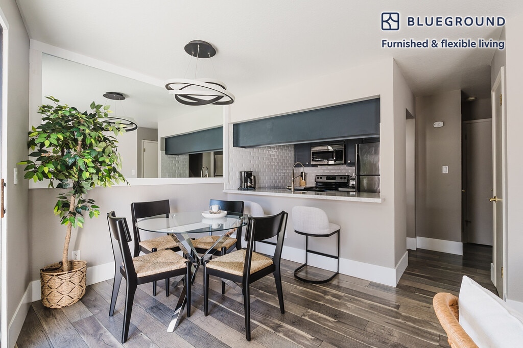 Feel at home wherever you choose to live with Blueground. You’ll love this bright San Mateo Park furnished two bedroom apartment with its modern decor, fully equipped kitchen, and comfortable living room. Ideally located, you’re close to all the best that San Mateo has to offer! (ID #SFO1786) The advertised rate of $2,940/month is the lowest available price, based on a 2 month(s) and 22 day(s) stay with a move-in date of October 22, 2025. If you’re looking for a 1-year stay, the rate is $5,140/month. Rates vary depending on the duration of stay, season, and other parameters. For exact pricing and additional pricing components, please visit our website and enter your desired move-in and move-out dates. The rate is applicable when billed upfront; it can be higher if billed in multiple payments. Brokers are welcome to reach out. Were you looking for an unfurnished lease? Try Blueground instead and upgrade from unfurnished to furnished living: - Furnished at rates comparable to unfurnished - No setup or furniture costs - save thousands - Move-in ready - save time, just bring your suitcase Designed with you in mind Thoughtfully designed with bespoke finishes, modern furnishings, and a fully equipped kitchen, you’ll enjoy that “I’m home” feeling with this Blueground apartment. Whether you’re lounging in your beautiful living room streaming the latest and greatest entertainment on the smart TV or premium wireless speaker, or getting some well-earned rest on the superior quality mattress with luxury linens, you’ll fall in love with everything this San Mateo Park apartment has to offer. This apartment also offers in-apartment laundry. Sleeping arrangements Single Bed, 35.4in/90cm Queen Bed, 63in/160cm Amenities Building amenities unique to this two bedroom apartment include an on-site: - Dryer - Elevator - Washing machine - Parking Arrival and ongoing support The entire apartment is yours to enjoy! Throughout your stay, you’ll have access to our Client Experience team through the Blueground App. You can schedule additional cleanings, submit maintenance requests, and view our neighborhood recommendations with just a few taps. We’ll share all details upon confirmation of your stay. Other things to note This Blueground apartment has flexible lease options, allowing you to book it for two months, a year, or more. Parking is offered based on availability and is subject to a fee. We take great pride in ensuring every photo displayed is shot in our own units with our actual furnishings. That said, we regularly refresh our decor and furniture arrangement, which may differ from what’s pictured. [SI]