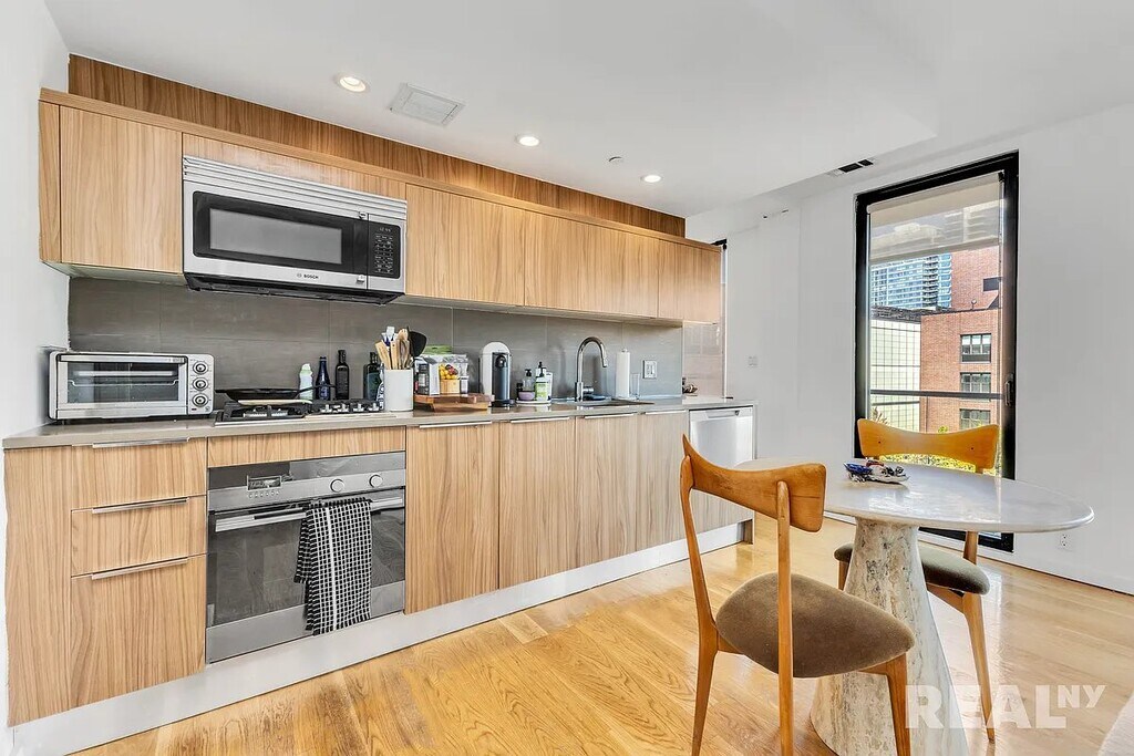 Rent Stabilized Bright 1 bedroom with Private Balcony!Nestled in Williamsburgs coveted waterfront district, 50 North 1st Street delivers on both convenience and lifestyle!Apartment Features:Bright sixth floor unitKing size bedroom with stunning Manhattan Skyline views Modern Kitchen with Caesar Stone Counter-topsStainless Steel Appliances including Dishwasher and MicrowaveAmple closet spaceRecessed LightingFloor to ceiling windows providing an abundance of natural light Central A/C Washer/dryerOak hardwood floors throughoutJuliet balcony with stellar Manhattan Skyline and Williamsburg Bridge ViewsBuilding Features:Communal Courtyard2 Roof DecksGymBike StorageElevatorParking GarageVirtual doormanRefuse chute on each floorPackage RoomLocation:Domino Park, the East River waterfront, and scenic promenadesCulinary and cultural scene restaurants, cafs, galleries, and nightlifeEasy access to multiple subway lines: L at Bedford & 7th, G at Metropolitan, J/M/Z at Marcy AvenueFerry stops nearby for direct access to ManhattanFirst Months Rent and Security Deposit equal to One Months Rent are due at signing in addition to a $20 application fee for each applicant.