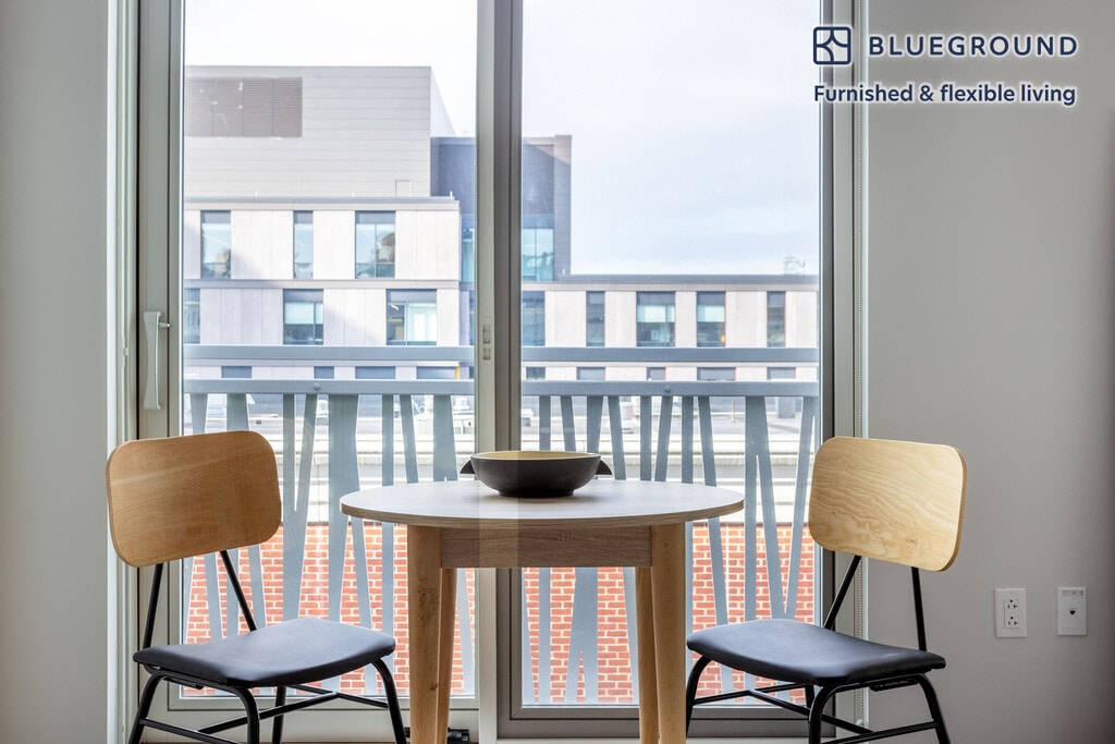 Discover the best of Cambridge, with this studio apartment in Kendall Square with views over the city. It’ll be easy to simply show up and start living in this furnished apartment with its fully equipped kitchen, living room, and our dedicated, on-the-ground support. (ID #BOS949) The advertised rate of $3,170/month is the lowest available price, based on a 2 month(s) and 8 day(s) stay with a move-in date of November 27, 2025. If you’re looking for a 1-year stay, the rate is $3,800/month. Rates vary depending on the duration of stay, season, and other parameters. For exact pricing and additional pricing components, please visit our website and enter your desired move-in and move-out dates. The rate is applicable when billed upfront; it can be higher if billed in multiple payments. Brokers are welcome to reach out. Were you looking for an unfurnished lease? Try Blueground instead and upgrade from unfurnished to furnished living: - Furnished at rates comparable to unfurnished - No setup or furniture costs - save thousands - Move-in ready - save time, just bring your suitcase Designed with you in mind As with any Blueground apartment, you’ll find a thoughtfully designed space complete with beautiful furniture and a fully equipped kitchen in this studio property. And, thanks to our superior quality mattresses, luxury linens, and towels, you can relax knowing you’ll always feel comfortably at home. When you’re ready for some fun, you can take in the Cambridge vibes or bring the entertainment to you with the premium wireless speaker or smart TV. This apartment also offers in-apartment laundry. Sleeping arrangements Queen Bed, 63in/160cm Amenities Building amenities unique to this studio apartment include an on-site: - BBQ Area - Dryer - Elevator - Washing machine - Lounge - Parking - Pets allowed Arrival and ongoing support The entire apartment is yours to enjoy! Throughout your stay, you’ll have access to our Client Experience team through the Blueground App. You can schedule additional cleanings, submit maintenance requests, and view our neighborhood recommendations with just a few taps. We’ll share all details upon confirmation of your stay. Ideally Located This furnished apartment is situated on Kendall Square at the intersection of Main Street and Broadway. The area hosts MIT and a variety of co-working spaces and incubators, ideal for bright young minds. It is home to a cutting-edge tech community and has thus become one of the world's most important tech and biotech centers. Farm-to-table restaurants and third-wave coffee joints have also found their places around this startup culture. The Cambridge neighborhood, which is a top destination for shopping, is centered around Kendall Square. The Kendall transit stop is only a 4-minute walk away via Main Street. Other things to note Building amenities may have an extra cost. This Blueground apartment has flexible lease options, allowing you to book it for one month, a year, or more. Pets are welcome, though weight limits and breed restrictions apply and may incur fees. Parking is offered based on availability and is subject to a fee. We take great pride in ensuring every photo displayed is shot in our own units with our actual furnishings. That said, we regularly refresh our decor and furniture arrangement, which may differ from what’s pictured. [SI]