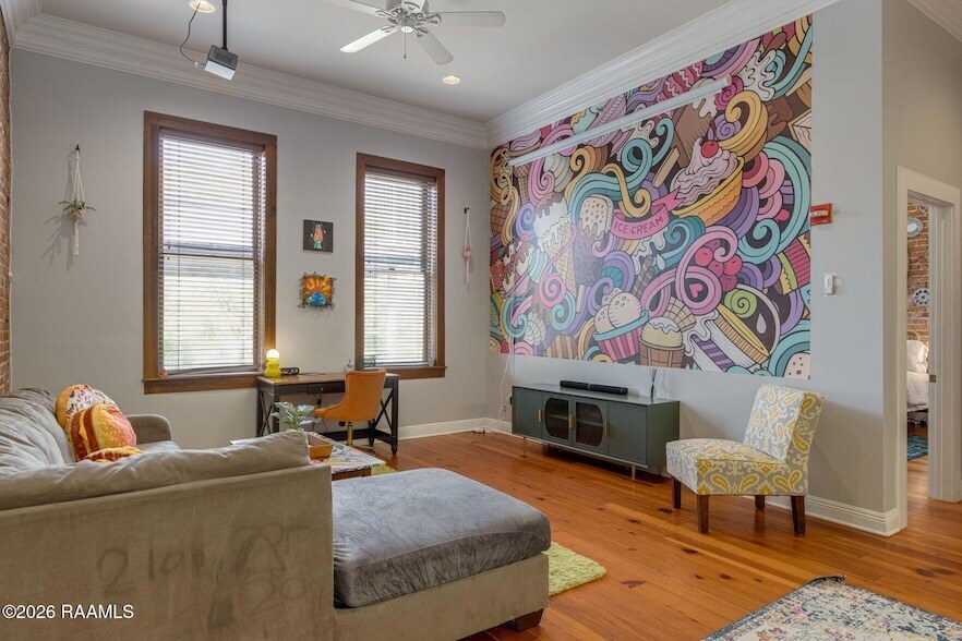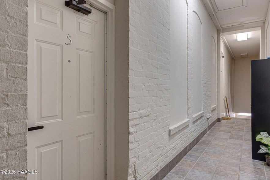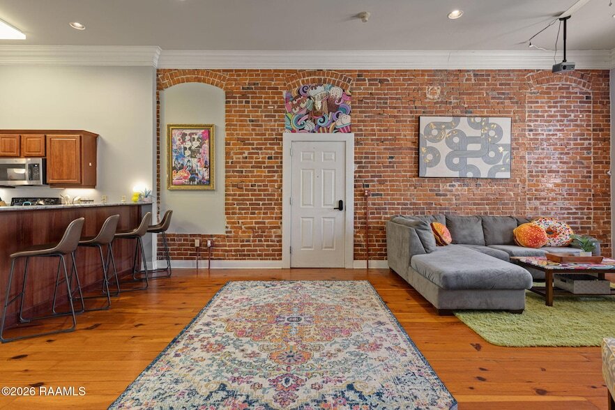 Located inside the historic Old Guaranty Bank Building at 500 Jefferson Street, this beautifully furnished 1-bedroom, 1.5-bath residence offers approximately 1,000 square feet of character, comfort, and downtown energy--all wrapped into one refined space. With exposed brick walls and timeless architectural details, the apartment blends early 1900s charm with modern functionality. The spacious living area flows effortlessly into a full kitchen featuring abundant cabinetry and storage, making it ideal for longer-term living. A convenient half bath off the main living area provides privacy for guests, while the primary suite offers a generously sized bedroom, expansive closet space, and a large master bath with extensive storage. Laundry is located inside the unit for everyday ease. Gated parking adds security and convenience, and just outside your door you'll experience the heartbeat of downtown Lafayette--restaurants, events, Mardi Gras parades, Festival International--all while enjoying the privacy of a historically significant building listed on the National Register of Historic Places. This is an opportunity to lease more than just an apartment; it's a chance to live inside one of Lafayette's most iconic addresses.