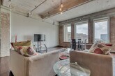 Feel at home in this modern 1-bedroom, 1-bath apartment on the 7th floor in the heart of Downtown Dallas, offering stunning skyline and pool views. This apartment features an industrial-chic design with exposed brick and sleek finishes. This fully furnished unit features comfortable and stylish furnishings and a fully equipped kitchen. Fast Wi-Fi is available. Free valet parking is available for one car only. Valet cannot accommodate large vehicles (Sprinter vans, long pickups), dually or service trucks, modified vehicles with lifts or oversized rims/tires, or motorcycles, trikes, or vehicles with non-standard controls. A pack 'n play or air mattress is available upon request, and a second air mattress can be provided for an additional fee of $35 per night. This centrally located apartment is a 5-minute walk to the Kay Bailey Hutchison Convention Center and the Dallas World Aquarium, an 8-minute walk to the Dallas Farmers Market, and a 10-minute walk to the Dallas Museum of Art and Reunion Tower. Onsite establishments include TalkinSpoon, an on-the-go restaurant serving Afro-Texan cuisine, Guest365 C-Store for everyday essentials, and Guest365 Liquor for premium wines and spirits. The apartment is also a short Uber ride to top neighborhoods like Deep Ellum and Uptown. Smoking or drugs are prohibited inside, and a $250 fee applies. Parties and loud noise are prohibited. As with many urban centers, there is a visible homeless presence outside the building, but the property remains secure with 24/7 video surveillance and keycard access. The building is located directly across from City Hall, which ensures a regular police and security presence in the area. The apartment's decor and furniture may vary slightly from what is shown in the photos. [SI]