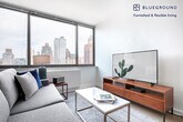 Discover the best of New York, with this two bedroom apartment in Hell's Kitchen with high floor views over the city. It’ll be easy to simply show up and start living in this elegantly furnished apartment with its fully equipped kitchen, beautiful living room, and our dedicated, on-the-ground support. (ID #NYC289) The advertised rate of $7,940/month is the lowest available price, based on a 12 month(s) stay with a move-in date of October 7, 2025. Rates vary depending on the duration of stay, season, and other parameters. For exact pricing and additional pricing components, please visit our website and enter your desired move-in and move-out dates. The rate is applicable when billed upfront; it can be higher if billed in multiple payments. Brokers are welcome to reach out. Were you looking for an unfurnished lease? Try Blueground instead and upgrade from unfurnished to furnished living: - Furnished at rates comparable to unfurnished - No setup or furniture costs - save thousands - Move-in ready - save time, just bring your suitcase Designed with you in mind As with any Blueground apartment, you’ll find a thoughtfully designed space complete with beautiful furniture and a fully equipped kitchen in this two bedroom property. And, thanks to our superior quality mattresses, luxury linens, and towels, you can relax knowing you’ll always feel comfortably at home. When you’re ready for some fun, you can take in the New York vibes or bring the entertainment to you with the premium wireless speaker or smart TV. This apartment also offers in-apartment laundry. Sleeping arrangements King Bed, 70.8in/180cm Double Bed, 55in/140cm Amenities Building amenities unique to this two bedroom apartment include an on-site: - Basketball Court - BBQ Area - Doorman - Dryer - Elevator - Washing machine - Lounge - Pets allowed Arrival and ongoing support The entire apartment is yours to enjoy! Throughout your stay, you’ll have access to our Client Experience team through the Blueground App. You can schedule additional cleanings, submit maintenance requests, and view our neighborhood recommendations with just a few taps. We’ll share all details upon confirmation of your stay. Other things to note Building amenities may have an extra cost. This Blueground apartment has flexible lease options, allowing you to book it for six months, a year, or more. Pets are welcome, though weight limits and breed restrictions apply and may incur fees. Brokes CYOF. We take great pride in ensuring every photo displayed is shot in our own units with our actual furnishings. That said, we regularly refresh our decor and furniture arrangement, which may differ from what’s pictured.