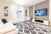 Discover pure delight in this contemporary 4-bedroom retreat, seamlessly blending living, dining, and a fully equipped kitchen. Hosting up to 10 guests, relish the private pool for ultimate relaxation. Just 10 minutes from Disney parks in Storey Lake, enjoy unmatched amenities including pools, lazy river, fitness center, mini-golf, and more. An unmatched escape awaits your discovery and create lasting memories here. Step into an exceptional 4-bedroom sanctuary, a fusion of contemporary elegance and comfort. Every family need is meticulously catered for in this home, where the living room seamlessly blends with the dining area and a fully equipped kitchen. The serene patio hosts a private heatable pool, an oasis of relaxation. On the first floor, a convenient king bedroom and bathroom await. Ascend to the second floor to find the king master suite and two more bedrooms, each featuring a double and a single bed, sharing a well-appointed bathroom. Elevating your experience, a laundry room with washer and dryer, complimentary Wi-Fi, parking, and a thoughtful welcome kit with essential bathroom and kitchen amenities enhance your stay. Your comfort and enjoyment are our top priorities. Replenish of bathroom and kitchen amenities are the guest responsibility. Heating the pool is a paid service and there is also a fee charged to use the barbecue grill. Storey Lake Resort has the perfect location just 10 minutes from all major attractions and theme parks in Orlando including Walt Disney World, Universal Resort, and Sea World. You will find fantastic resort amenities for the whole family to enjoy with a tiki bar, a resort-style pool with slides and lazy river, sports court, mini-golf, kayak, and fitness center. There are 2 clubs inside the property, one of them with a themed pirate pool that kids will love is just walking distance from the house. Located just off Osceola Parkway, the resort has easy access to restaurants, shopping, and supermarkets, everything with just a 5-minute drive distance. Quiet hours are between 22:00 and 8:00.