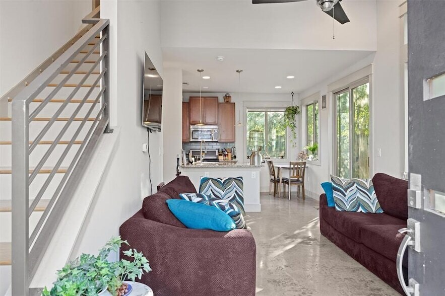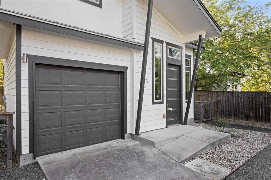 Tucked away on a quiet street in East Austin, this modern, energy-efficient detached condo offers privacy, style, and unbeatable convenience. Built in 2014, the home features vaulted ceilings, large windows, and a thoughtfully designed floor plan. The main level includes a sleek kitchen with granite counters, stainless steel appliances, a breakfast bar, and polished concrete floors, along with a half bath for guests. Upstairs, you'll find two spacious bedrooms with high ceilings, two full bathrooms including a primary suite with a walk-in shower and generous closet space. The private backyard is xeriscaped for low maintenance and includes a covered patio perfect for relaxing or entertaining. Enjoy a 1-car garage, low energy costs, and proximity to parks, creeks, and the vibrant East Side. Just 3 miles from downtown, with restaurants, bars, and Highway 183 access nearby. Only 10 minutes to the airport this location truly can t be beat.