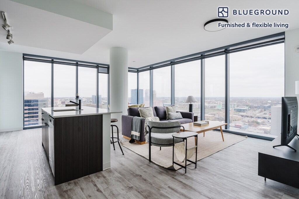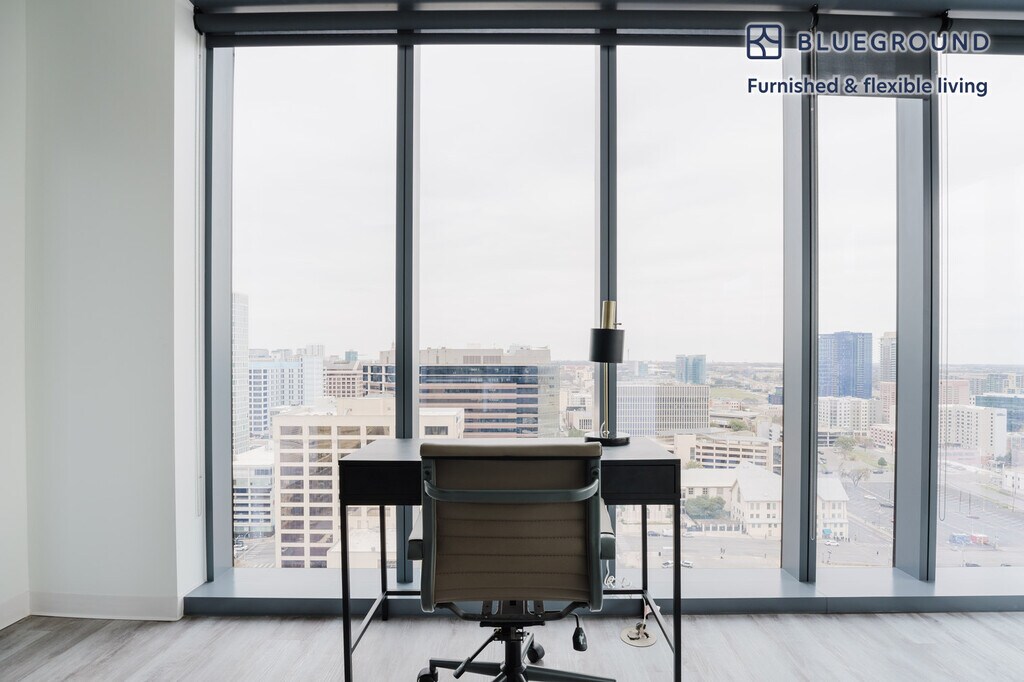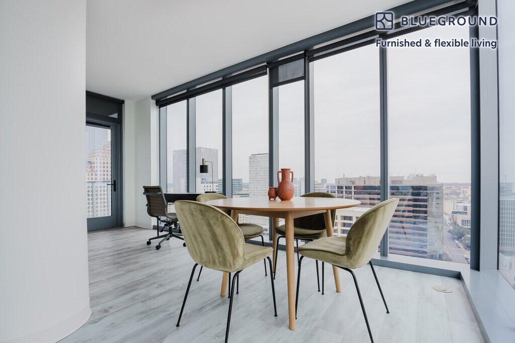 Feel at home wherever you choose to live with Blueground. You’ll love this stylish Downtown Austin furnished two bedroom apartment with its modern decor, fully equipped kitchen, and beautiful living room. Ideally located, you’re close to all the best that Austin has to offer! (ID #ATX294) The advertised rate of $4,150/month is the lowest available price, based on a 1 month(s) and 28 day(s) stay with a move-in date of November 1, 2025. If you’re looking for a 1-year stay, the rate is $4,510/month. Rates vary depending on the duration of stay, season, and other parameters. For exact pricing and additional pricing components, please visit our website and enter your desired move-in and move-out dates. The rate is applicable when billed upfront; it can be higher if billed in multiple payments. Brokers are welcome to reach out. Were you looking for an unfurnished lease? Try Blueground instead and upgrade from unfurnished to furnished living: - Furnished at rates comparable to unfurnished - No setup or furniture costs - save thousands - Move-in ready - save time, just bring your suitcase Designed with you in mind Gorgeous furniture, fully equipped kitchen, smart TV, and a premium wireless speaker are just a few of the amenities you’ll find inside this two bedroom apartment. Ideally located in Austin, you’ll find a lot to love outside as well. When you’re ready to relax, you’ll be happy to discover every Blueground bedroom comes with superior quality mattresses, luxury linens, and cozy towels. We handle everything so you can simply show up and start living. This apartment also offers in-apartment laundry. Sleeping arrangements King Bed, 70.8in/180cm Queen Bed, 63in/160cm Amenities Building amenities unique to this two bedroom apartment include an on-site: - Doorman - Dryer - Elevator - Game room - Swimming pool - Washing machine - Lounge - Parking - Pets allowed - Rooftop BBQ Arrival and ongoing support The entire apartment is yours to enjoy! Throughout your stay, you’ll have access to our Client Experience team through the Blueground App. You can schedule additional cleanings, submit maintenance requests, and view our neighborhood recommendations with just a few taps. We’ll share all details upon confirmation of your stay. Other things to note Building amenities may have an extra cost. This Blueground apartment has flexible lease options, allowing you to book it for one month, a year, or more. Pets are welcome, though weight limits and breed restrictions apply and may incur fees. Parking is offered based on availability and is subject to a fee. We take great pride in ensuring every photo displayed is shot in our own units with our actual furnishings. That said, we regularly refresh our decor and furniture arrangement, which may differ from what’s pictured. Also note - There have been reported instances of homeless populations nearby - This apartment's central location means it can be noisy at times - Noise from the nearby nightlife can sometimes be heard late at night