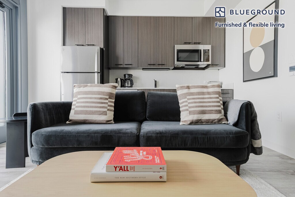 Feel at home wherever you choose to live with Blueground. You’ll love this charming Downtown Austin furnished one bedroom apartment with its modern decor, fully equipped kitchen, and beautiful living room. Ideally located, you’re close to all the best that Austin has to offer! (ID #ATX291) The advertised rate of $2,500/month is the lowest available price, based on a 2 month(s) and 1 day(s) stay with a move-in date of October 27, 2025. If you’re looking for a 1-year stay, the rate is $2,590/month. Rates vary depending on the duration of stay, season, and other parameters. For exact pricing and additional pricing components, please visit our website and enter your desired move-in and move-out dates. The rate is applicable when billed upfront; it can be higher if billed in multiple payments. Brokers are welcome to reach out. Were you looking for an unfurnished lease? Try Blueground instead and upgrade from unfurnished to furnished living: - Furnished at rates comparable to unfurnished - No setup or furniture costs - save thousands - Move-in ready - save time, just bring your suitcase Designed with you in mind Thoughtfully designed with bespoke finishes, modern furnishings, and a fully equipped kitchen, you’ll enjoy that “I’m home” feeling with this Blueground apartment. Whether you’re lounging in your stylish living room streaming the latest and greatest entertainment on the smart TV or premium wireless speaker, or getting some well-earned rest on the superior quality mattress with luxury linens, you’ll fall in love with everything this Downtown Austin apartment has to offer. This apartment also offers in-apartment laundry. Sleeping arrangements Queen Bed, 63in/160cm Amenities Building amenities unique to this one bedroom apartment include an on-site: - Doorman - Dryer - Elevator - Game room - Swimming pool - Washing machine - Lounge - Parking - Pets allowed - Rooftop BBQ Arrival and ongoing support The entire apartment is yours to enjoy! Throughout your stay, you’ll have access to our Client Experience team through the Blueground App. You can schedule additional cleanings, submit maintenance requests, and view our neighborhood recommendations with just a few taps. We’ll share all details upon confirmation of your stay. Other things to note Building amenities may have an extra cost. This Blueground apartment has flexible lease options, allowing you to book it for one month, a year, or more. Pets are welcome, though weight limits and breed restrictions apply and may incur fees. Parking is offered based on availability and is subject to a fee. We take great pride in ensuring every photo displayed is shot in our own units with our actual furnishings. That said, we regularly refresh our decor and furniture arrangement, which may differ from what’s pictured. Also note - There have been reported instances of homeless populations nearby - This apartment's central location means it can be noisy at times - Noise from the nearby nightlife can sometimes be heard late at night