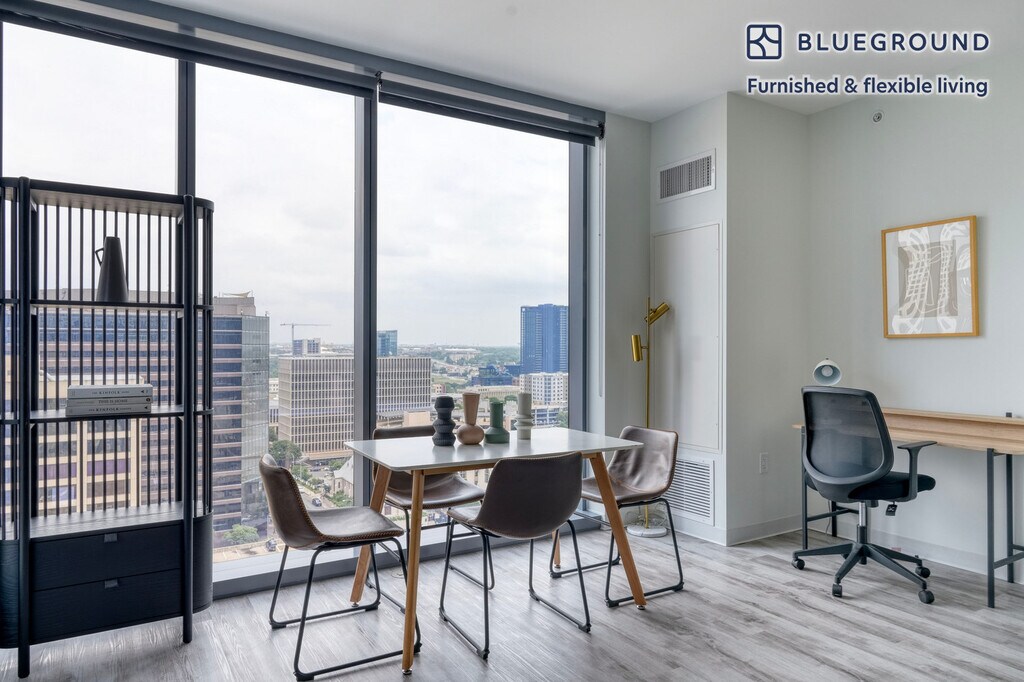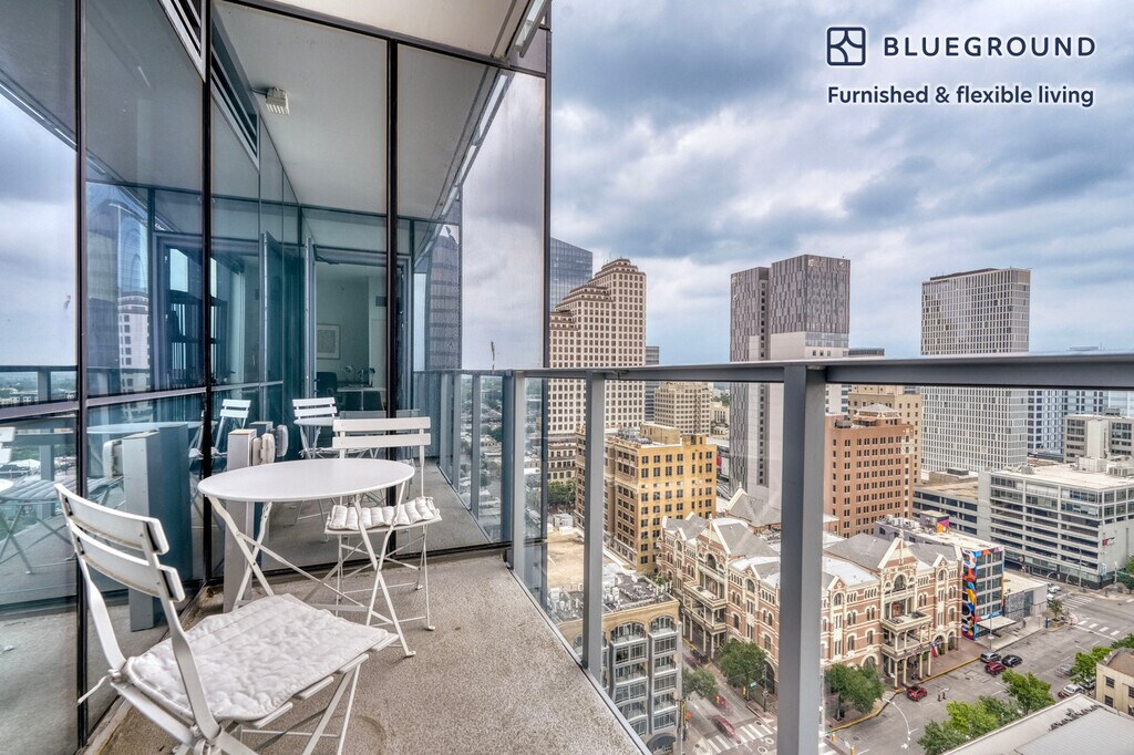 Show up and start living from day one in Austin with this sophisticated one bedroom Blueground apartment. You’ll love coming home to this thoughtfully furnished, beautifully designed, and fully equipped Downtown Austin home. (ID #ATX254) The advertised rate of $1,880/month is the lowest available price, based on a 1 month(s) and 3 day(s) stay with a move-in date of December 1, 2025. If you’re looking for a 1-year stay, the rate is $3,490/month. Rates vary depending on the duration of stay, season, and other parameters. For exact pricing and additional pricing components, please visit our website and enter your desired move-in and move-out dates. The rate is applicable when billed upfront; it can be higher if billed in multiple payments. Brokers are welcome to reach out. Were you looking for an unfurnished lease? Try Blueground instead and upgrade from unfurnished to furnished living: - Furnished at rates comparable to unfurnished - No setup or furniture costs - save thousands - Move-in ready - save time, just bring your suitcase Designed with you in mind Gorgeous furniture, fully equipped kitchen, smart TV, and a premium wireless speaker are just a few of the amenities you’ll find inside this one bedroom apartment. Ideally located in Austin, you’ll find a lot to love outside as well. When you’re ready to relax, you’ll be happy to discover every Blueground bedroom comes with superior quality mattresses, luxury linens, and cozy towels. We handle everything so you can simply show up and start living. This apartment also offers in-apartment laundry. Sleeping arrangements Queen Bed, 63in/160cm Amenities Building amenities unique to this one bedroom apartment include an on-site: - Doorman - Dryer - Elevator - Game room - Swimming pool - Washing machine - Lounge - Parking - Pets allowed - Rooftop BBQ Arrival and ongoing support The entire apartment is yours to enjoy! Throughout your stay, you’ll have access to our Client Experience team through the Blueground App. You can schedule additional cleanings, submit maintenance requests, and view our neighborhood recommendations with just a few taps. We’ll share all details upon confirmation of your stay. Other things to note Building amenities may have an extra cost. This Blueground apartment has flexible lease options, allowing you to book it for one month, a year, or more. Pets are welcome, though weight limits and breed restrictions apply and may incur fees. Parking is offered based on availability and is subject to a fee. We take great pride in ensuring every photo displayed is shot in our own units with our actual furnishings. That said, we regularly refresh our decor and furniture arrangement, which may differ from what’s pictured. [SI]