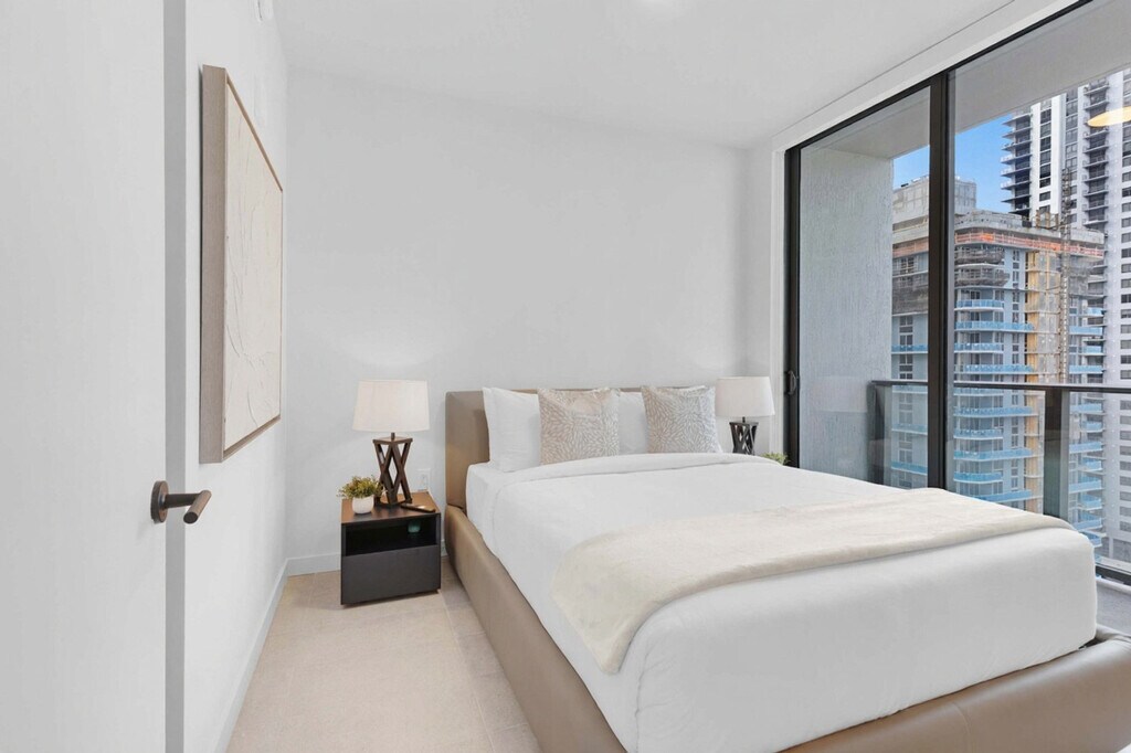 The advertised rate of $4,760/month is the lowest available price, based on a 1 month(s) stay with a move-in date of September 1, 2026. Rates vary depending on the duration of stay, season, and other parameters. For exact pricing and additional pricing components, please visit our website and enter your desired move-in and move-out dates. The rate is applicable when billed upfront; it can be higher if billed in multiple payments. Feel at home in this designer 2-bedroom, 2-bath residence at 501 NE 1st Avenue in Downtown Miami. This apartment offers floor-to-ceiling windows and a private balcony. Designed and furnished by an award-winning designer, this apartment combines sleek European style with everyday comfort. The living room features floor-to-ceiling windows with custom treatments, designer furnishings, finished flooring, and a pull-out sofa bed. The European-style kitchen is fully equipped with custom Italian cabinetry and counters, an integrated paneled refrigerator/freezer, a speed oven, a dishwasher, a coffee maker and kettle, cookware and kitchen essentials, silverware, dishes and wine glasses, a dining table, matte black Kohler fixtures, and an in-unit washer and dryer. The bedrooms offer comfort paired with generous storage, including a queen bed with fresh linens and fully built-out wardrobe closets. The bathrooms feature custom Italian vanities, matte black Kohler plumbing fixtures, and contemporary counters and cabinetry. Valet service is conveniently provided. Self-parking is managed by a third-party company, Metropolis, and requires a separate payment directly with them. Parking rates are $15 for 1 hour, $20 for 2 hours, $30 for 3 hours, $40 for 10 hours, and $50 for 24 hours. All rates are subject to taxes and additional fees. Located at 501 First – 501 NE 1st Ave, Miami, FL, you’re in the heart of Downtown Miami, where culture, nightlife, dining, and waterfront views are all just minutes away. This centrally located apartment makes it easy to explore the city. Attractions and highlights include Bayside Marketplace (5 minutes), Kaseya Center (5 minutes), Bayfront Park (6 minutes), Brickell City Centre (10 minutes), Wynwood Arts District (10 minutes), Miami Design District (12 minutes), South Beach (15 minutes), and Miami International Airport (15 minutes). Parking enforcement is active 24/7. Please do not place cardboard in the trash chute. Flatten boxes and take them to the loading dock. [SI]