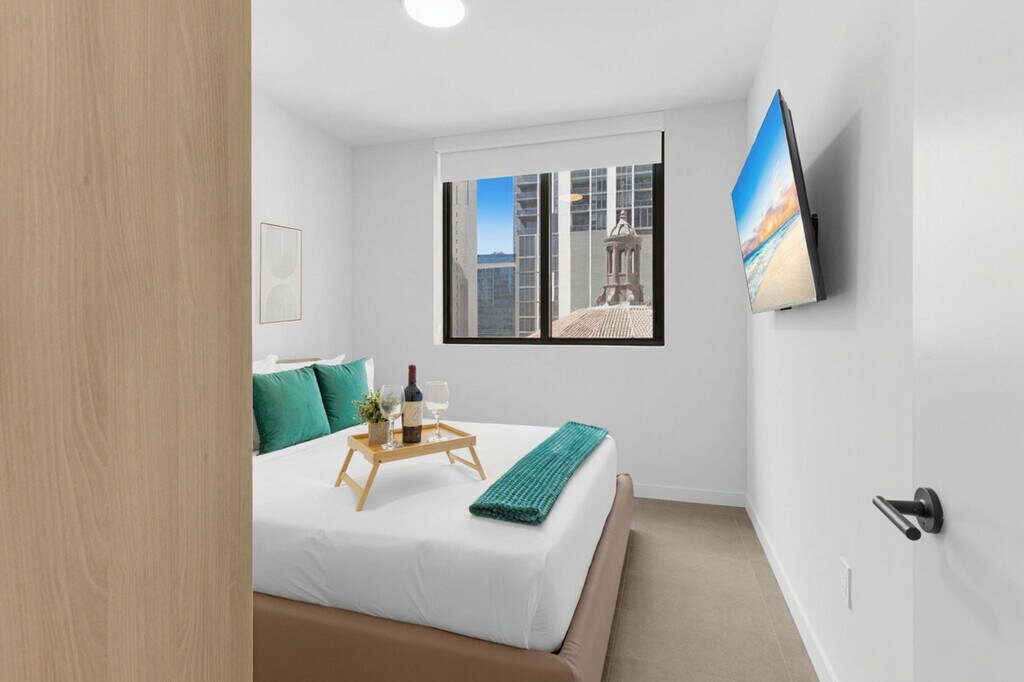 The advertised rate of $4,012/month is the lowest available price, based on a 30 day(s) stay with a move-in date of August 30, 2026. Rates vary depending on the duration of stay, season, and other parameters. For exact pricing and additional pricing components, please visit our website and enter your desired move-in and move-out dates. The rate is applicable when billed upfront; it can be higher if billed in multiple payments. Experience refined city living and feel at home in this designer 1-bedroom apartment in the heart of Downtown Miami at 501 NE 1st Avenue. This retreat features floor-to-ceiling windows and a private balcony. This apartment features curated furnishings by Resource Furniture, a sleek European kitchen, and an in-unit washer and dryer. The kitchen is fully equipped and includes custom Italian cabinetry and counters, an integrated paneled refrigerator/freezer, a speed oven, a dishwasher, a coffee maker and kettle, cookware and kitchen essentials, silverware, dishes and wine glasses, and matte black Kohler fixtures. The bathroom features custom Italian vanities, matte black Kohler plumbing fixtures, and contemporary counters and cabinetry. Valet service is conveniently provided. Self-parking is managed by a third-party company, Metropolis, and requires a separate payment directly with them. Parking rates are $15 for 1 hour, $20 for 2 hours, $30 for 3 hours, $40 for 10 hours, and $50 for 24 hours. All rates are subject to taxes and additional fees. Located at 501 First – 501 NE 1st Ave, Miami, FL, you’re in the heart of Downtown Miami, where culture, nightlife, dining, and waterfront views are all just minutes away. This centrally located apartment makes it easy to explore the city. Bayside Marketplace, Kaseya Center, and Bayfront Park are all within 6 minutes. Brickell City Centre and Wynwood Arts District are 10 minutes away, while the Miami Design District is 12 minutes away and South Beach and Miami International Airport are 15 minutes away. Parking enforcement is active 24/7. Please do not place cardboard in the trash chute. Flatten boxes and take them to the loading dock. [SI]