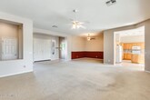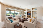 Property Id: 2270523 Golf Course and mountain views & Resort Amenities! This bright home showcases soaring ceilings & abundant natural light throughout. The kitchen features a center island, pantry, eat-in dining area & large windows, flowing seamlessly into the living room with built-in shelving & carpeted floors. The spacious primary suite offers French doors, backyard access, high ceilings, walk-in closet & an ensuite with dual vanity, walk-in shower & whirlpool tub. Two additional bedrooms are generously sized, ideal for guests or a home office. Enjoy a covered patio overlooking the golf course & mountain views! Added perks include a 2018 AC unit, new dishwasher, new washer and dryer, refrigerator with ice maker, built-in garage cabinets & garage fridge. Community amenities include a clubhouse, two pools, spa, fitness center & courts for tennis, pickleball & bocce ball. Close to everything you need for easy living.