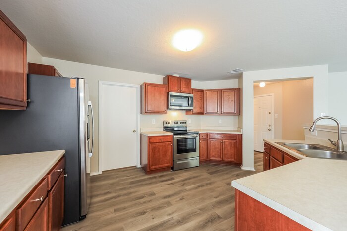 COMING SOON This home is coming soon. Please check to see the estimated availability date. Monthly Recurring Fees: $25.00 - Smart Home 5019 Arizona Bay, San Antonio, TX 78245 offers 3 bedrooms, 2.5 bathrooms, and an impressive 2,546 square feet of living space, enhanced by LVP flooring and smart home features including a smart lock and smart thermostat. The exterior’s classic brick façade and attached two-car garage create a welcoming entry, leading into a home designed for both space and flexibility. On the main floor, the layout opens into a wide living area that seamlessly connects to the dining space and kitchen. LVP flooring runs throughout, adding durability and a clean, cohesive look. The kitchen is positioned to anchor the space, offering ample cabinetry, generous counter space, and a layout that allows easy movement between cooking, dining, and gathering areas. A separate den on this level provides an additional space that can be used for a home office, lounge, or creative setup. Upstairs, the layout expands into even more room to spread out, featuring a large secondary living area that can serve as a media room, game room, or additional lounge space. The primary bedroom offers a spacious retreat with an en-suite bathroom that includes dual sinks, a soaking tub, and a separate shower, along with a walk-in closet. Additional bedrooms are well-sized and positioned for privacy, each with convenient access to a full bathroom. Out back, a patio extends into a fenced yard, creating a natural outdoor extension of the home with room to set up seating or enjoy the open space. Located in San Antonio, this home offers convenient access to Loop 1604 and Highway 90, with downtown San Antonio approximately 25 minutes away and nearby shopping, dining, and parks just a short drive. With its expansive layout, multiple living areas, and smart home features, this home delivers space and versatility in a well-connected location. Apply Now! *Maymont Homes provides residents with convenient solutions, including simplified utility billing and flexible rent payment options. Contact us for more details. This information is deemed reliable, but not guaranteed. All measurements are approximate. Actual product and home specifications may vary in dimension or detail. Images are for representational purposes only. Some programs and services may not be available in all market areas. Prices and availability are subject to change without notice. Advertised rent prices do not include the required application fee, the partially refundable reservation fee (due upon application approval), or the mandatory monthly utility management fee (in select market areas.) Residents must maintain renters insurance as specified in their lease. If third-party renters insurance is not provided, residents will be automatically enrolled in our Master Insurance Policy for a fee. Select homes may be located in communities that require a monthly fee for community-specific amenities or services. For complete details, please contact a company leasing representative. Equal Housing Opportunity. Estimated availability date is subject to change based on construction timelines and move-out confirmation. Contact us to schedule a showing.