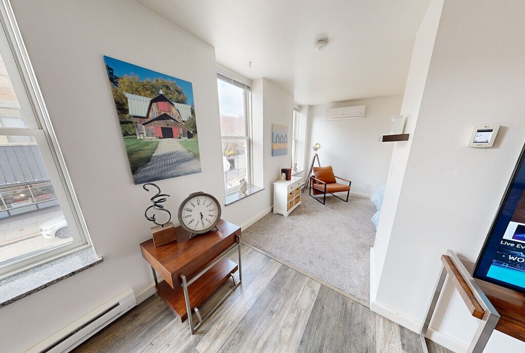 The advertised rate of $1,744/month is the lowest available price, based on a 30 day(s) stay with a move-in date of August 3, 2026. Rates vary depending on the duration of stay, season, and other parameters. For exact pricing and additional pricing components, please visit our website and enter your desired move-in and move-out dates. The rate is applicable when billed upfront; it can be higher if billed in multiple payments. Located right above Main Street in the 'painted flower mural building', this beautiful apartment is loaded with natural light and has everything you need to feel at home in Oshkosh. You can leave your car in the parking lot as you will not need it to go to any of Oshkosh's markets, restaurants, bars, museums, and more. Everything is at your doorstep. All-new furniture and furnishings highlight this beautiful space, with a new kitchen and bathroom featuring stainless steel appliances and marble tile. Enjoy entertainment on a 65' UHD TV with premium cable, Hulu, and more. You can leave your car in the parking lot as you will not need it to go to any of Oshkosh's markets, restaurants, bars, museums, and more. Everything is at your doorstep. [SI]