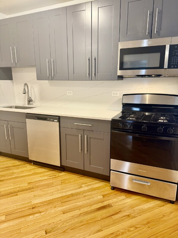 Property Id: 647080 Available NOW- GORGEOUS ALBANY PARK REHAB- Sunny second-floor corner unit with walls of windows. Brand new dine-in kitchen with 42" cabinets, brushed metal hardware, quartz countertops and backsplash, and new stainless steel appliances, including dishwasher. Spacious living room with walls of windows and original built-ins. Brand new bathroom with new tub, marble-like tiles, vanity, and fixtures. Two XL bedrooms (both fit king beds) with walk-in closets. Ceiling fans and mini-blinds. Laundry and bike storage on site. Add a storage locker for every tenant. Short walk to Northeastern University, Aldi, Jewel/Osco, and Walgreens. Quiet residential block close to expressways 90/94. Good credit or co-signer required. Broker owned Nicole Thomas @properties.