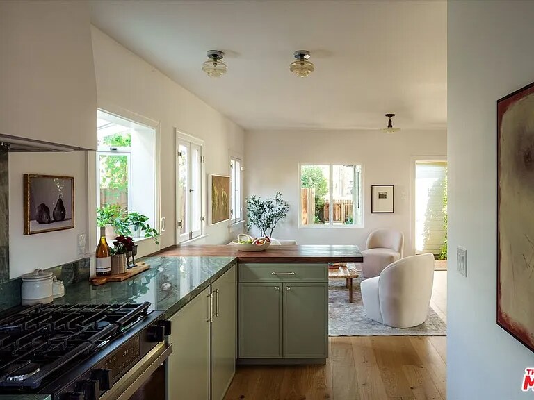 Property Id: 2212442 LOCATION LOCATION LOCATION! This completely renovated 1 bedroom, 1 bath designer bungalow exudes charm and luxury, located in the heart of Eagle Rock - two blocks from Trader Joe's and a block from historic Colorado Blvd with restaurants, coffee shops and more! Oak floors guide you through airy living and dining spaces into a green-hued kitchen with dramatic Laguna Bay quartzite counters and custom-built walnut butcher block. Gorgeous imported 1970s Slovenian clear-glass light fixtures and custom cabinetry feature a hidden side-by-side washer/dryer, LG refrigerator, bespoke oven and a skylight, bathing the space in natural light. The bedroom, illuminated by a striking 1920s Art Deco skyscraper light fixture, offers a calming garden view, while the bath pairs creamy-toned checkered tile floors with a bold shower lined in crimson Zellige tile. It has it's own private outdoor retreat -- an enchanting garden with a brick patio for dining under the stars. Welcome home!