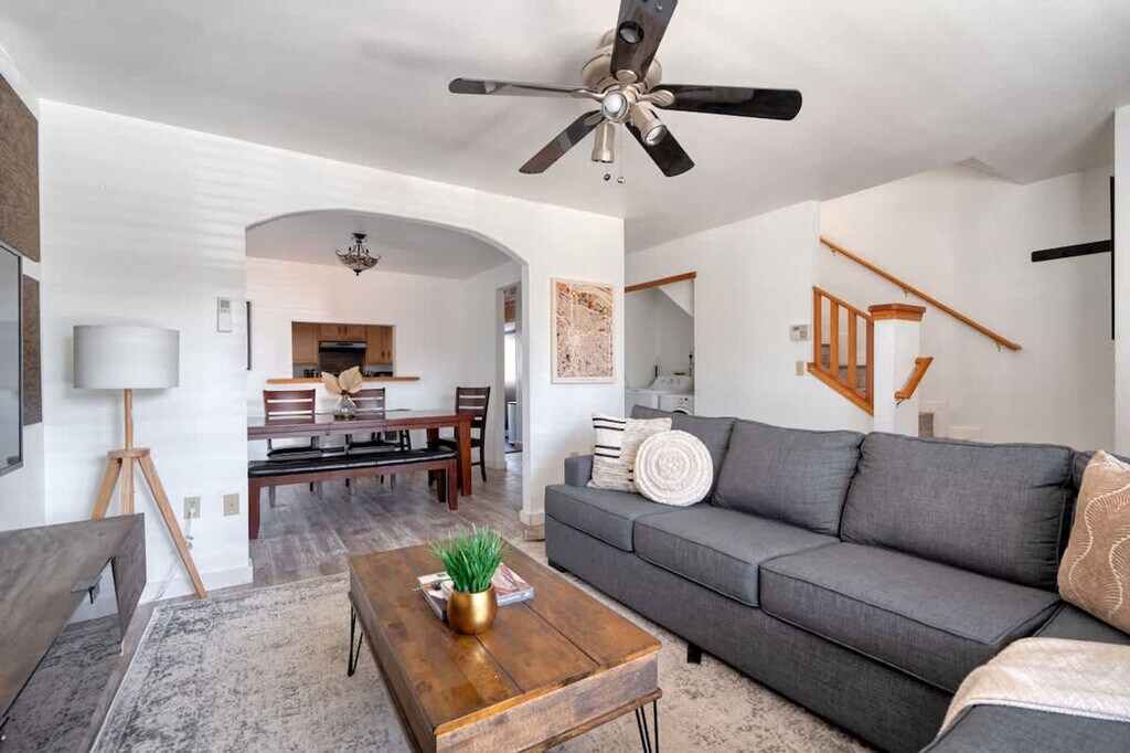 Feel at home in this beautifully remodeled four-bedroom home located in the heart of NE Portland, Oregon. With a walk score of 99, this home offers a cozy and relaxed living room with new windows that stream plenty of natural light. The couch is perfect for lounging, and on rainy days, you can cuddle up and watch movies on the 50" LED flat-screen TV with access to Netflix and fast Wi-Fi. The home features brand new air conditioning in the bedrooms, living room, and throughout. Designed with luxury and comfort in mind, this one-of-a-kind home includes a fully equipped kitchen with new appliances and a spacious dining room with a big farmhouse-style table. Enjoy the convenience of a local co-op down the street and dozens of local restaurants within walking distance, including several favorite food carts. The home boasts three brand new queen beds with comfortable down comforters, duvets, and large pillows. Bedrooms have large closets, dressers for clothing storage, and luggage racks for your bags. The unit also includes brand new stainless steel appliances and a large in-unit washer and dryer for your laundry convenience. High-speed Wi-Fi is available throughout the house, and guests are provided with shampoo, conditioner, body wash, laundry soap, cleaning supplies, and extra towels. Situated in the Alberta Arts District, this home is in a neighborhood that stretches from Williams Ave to 33rd Ave, known for its independence and diversity. The area is lined with shops, restaurants, bars, and galleries, offering something for everyone. Walking down the street, you'll see murals everywhere, making this neighborhood colorful and vibrant. It's a perfect spot for fans of great food, craft beer, and pour-over coffee, with Portland's top-rated restaurants, bars, and vintage shops nearby. Quiet hours are between 22:00 and 8:00.