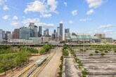 Downtown/Eado corner loft with floor-to-ceiling, surrounding windows showcasing gorgeous skyline views of downtown and the architecturally inspired Shell Energy Stadium, home to the Houston Dynamo, and Daikin Park, home of the Houston Astros. The kitchen features modern flat-panel cabinetry, granite countertops, and a stainless steel appliance package. A designer bathroom boasts double sinks, a separate shower, and a soaking tub. The primary bedroom features sliding barn-style doors and a huge walk-in closet. A covered wrap-around balcony is also included. This prime location allows for easy access to public transport or walking to downtown. Enjoy the sparkling pool during our hot Texas summers. Washer, dryer, and refrigerator are included in the unit.