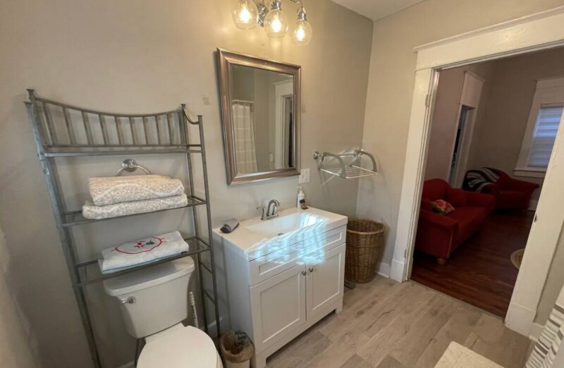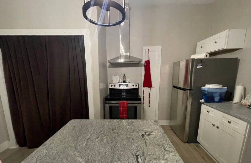 Property Id: 2244660 Remodeled 2BR/1BA home with hardwood floors, high ceilings, and a chef's kitchen featuring granite countertops, recycled wood shelves, and stainless steel appliances. Relax on the front porch, enjoy a bathroom with a tub and storage nook, and stay cool with central A/C. Maximum 2 small pets welcome. 2 bedrooms, 1 bathroom with tub and storage nook Remodeled with hardwood floors and high ceilings Chef's kitchen with granite countertops, recycled wood shelves, and stainless steel appliances Front porch for relaxing evenings Central A/C + heat pump + additional window unit Water and lawn care included Pet friendly: cats preferred, small dogs under 30 lbs, maximum 2 pets Off-street parking is free; 1-2 first-come, first-serve spots available on property Part of a duplex—just one neighbor at most Responsive landlord Suitable for families, couples, students, or anyone looking for a charming home 913 sq. ft., unfurnished (staged furniture only)