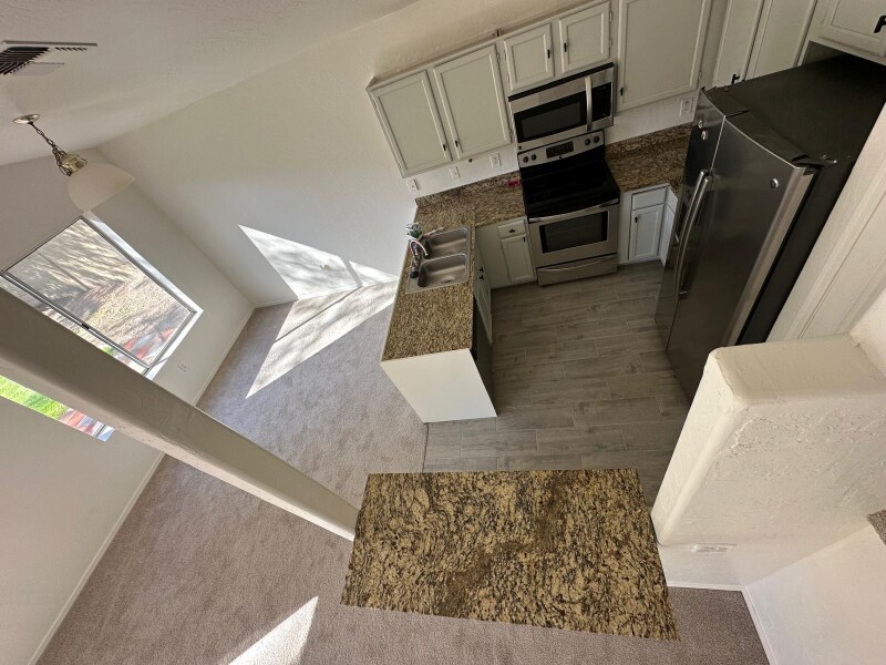 Property Id: 2206058 Location, Location. 3 bedrooms and 2.5 bath home in fantastic Chandler neighborhood. Across street from Kyrene del Paloma elementary school and Kyrene de Pueblo middle school , Close to Intel, shopping, schools and more. The washer/dryer and fridge are included with the rental. Formal living/dining as you walk into the home. The kitchen is complete with tiled countertops, beautiful large window that overlooks the backyard and walk in pantry. Kitchen also has dining area. Step down into the spacious family room. A half bath is downstairs. Upstairs you'll find all bedrooms. Master on one side, secondary bedrooms on the other. Master has on-suite and walk in closet. Located near Chandler Fashion Mall, Excellent Shopping and Dining, Award winning KYRENE Schools.