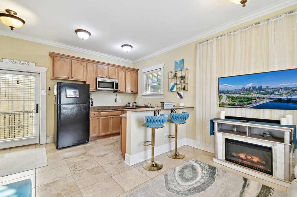 Welcome to the heart of Hyde Park! Feel at home in this beautifully decorated apartment, perfectly situated for exploring Tampa's iconic spots. The living room invites you to relax on plush leather and velvet furniture, unwind by the cozy indoor fireplace, or stream your favorite shows on the 65” smart TV. The fully equipped kitchen has everything you need to prepare meals in style, including cooking basics, a blender, toaster oven, microwave, stove, dishwasher, coffee maker, coffee, hot water kettle, and wine glasses. Other comforts include a refreshing bathroom with a bathtub and provided essentials, air conditioning, and a small in-unit washer and dryer for your convenience. Step outside to your private courtyard, an open space furnished for relaxation, with a BBQ grill for an outdoor meal or gather around the fire pit for a cozy evening under the stars. A Pack ’n play/travel crib is available upon request. Personal training and yoga services are also available for an additional hourly fee. Luggage drop-off is allowed for early arrivals or late departures. Early check-in may be available for a small hourly convenience fee, provided the apartment is not booked the night before. This home is perfectly situated in the vibrant and historic Hyde Park, a short walk from Hyde Park Village, where you can explore trendy boutiques and dine at top-rated restaurants. Enjoy a scenic bike ride along Bayshore Boulevard or easily access Tampa's most popular destinations. You are just minutes away from Tampa’s iconic spots, such as Amalie Arena, Sparkman Wharf, and Bay Shore for biking along the water. Explore the vibrant energy of Water Street, immerse yourself in the history of Ybor City, or unwind at Armature Works. Getting around is a breeze with one free, dedicated parking space at the rear of the apartment and plenty of free street parking out front. Many attractions are just a short drive or walk away, including Hyde Park Village (0.3 miles), The University of Tampa (0.5 miles), Tampa General Hospital (1 mile), Tampa Convention Center (1 mile), Amalie Arena (1.4 miles), Sparkman Wharf (1.7 miles), Downtown Tampa (1.9 miles), Armature Works (2.1 miles), Tampa International Airport (5 miles), Ybor City Historic District (4.2 miles), Busch Gardens (10.9 miles), and Downtown St. Pete (21.6 miles). A first aid kit is provided. For those mixing work and pleasure, a convenient fold-away desk and high-speed Wi-Fi create a perfect workspace. [SI]