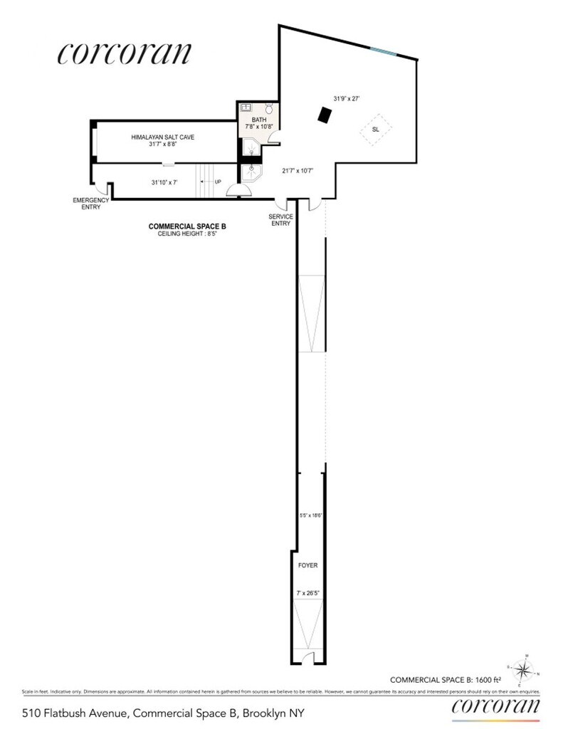 New Commercial Listing - Two spaces that can be leases together or separately previously used as a restaurant/bar/wellness center. Space is located in a fully occupied 141 unit residential property in a high traffic area and just 1 block from Prospect Park and 1/2 block to B/Q/S trains. This listing represents Space B. There are two alternative floor plans if extra square footage is needed. Please inquire for details.Space B: 1600sf - $5,700Occupancy 50Metered for electric, heat and ACAnnual RE taxes - request 2024 for estimateCan be leased with space B connected if full space is required or they may be leased separately.No loud music or rental space venues, no cannabis shops.Previously used as a yoga studio and wellness center. Yoga area has a skylight and there is a custom-built Himalayan salt cave that is the largest in NYC.Space has items for sale that may or may not still be available at the time of lease including infrared sauna, sauna and cold plunge.3 months of build out time offered.5-year lease minimum1 restroom with showers but business can convert if showers are not needed.