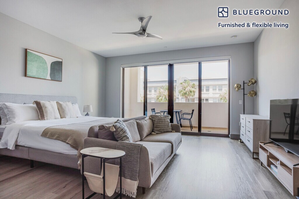 Discover the best of Los Angeles, with this studio apartment in Mid-Wilshire. It’ll be easy to simply show up and start living in this furnished apartment with its fully equipped kitchen, living room, and our dedicated, on-the-ground support. (ID #LAX1224) The advertised rate of $2,360/month is the lowest available price, based on a 2 month(s) and 1 day(s) stay with a move-in date of February 15, 2026. If you’re looking for a 1-year stay, the rate is $2,450/month. Rates vary depending on the duration of stay, season, and other parameters. For exact pricing and additional pricing components, please visit our website and enter your desired move-in and move-out dates. The rate is applicable when billed upfront; it can be higher if billed in multiple payments. Brokers are welcome to reach out. Were you looking for an unfurnished lease? Try Blueground instead and upgrade from unfurnished to furnished living: - Furnished at rates comparable to unfurnished - No setup or furniture costs - save thousands - Move-in ready - save time, just bring your suitcase Designed with you in mind Gorgeous furniture, fully equipped kitchen, smart TV, and a premium wireless speaker are just a few of the amenities you’ll find inside this studio apartment. Ideally located in Los Angeles, you’ll find a lot to love outside as well. When you’re ready to relax, you’ll be happy to discover every Blueground bedroom comes with superior quality mattresses, luxury linens, and cozy towels. We handle everything so you can simply show up and start living. This apartment also offers in-apartment laundry. Sleeping arrangements King Bed, 70.8in/180cm Amenities Building amenities unique to this studio apartment include an on-site: - BBQ Area - Dryer - Elevator - Swimming pool - Washing machine - Parking - Pets allowed Arrival and ongoing support The entire apartment is yours to enjoy! Throughout your stay, you’ll have access to our Client Experience team through the Blueground App. You can schedule additional cleanings, submit maintenance requests, and view our neighborhood recommendations with just a few taps. We’ll share all details upon confirmation of your stay. Ideally Located This furnished rental is located in Mid-Wilshire. Often referred to as Midtown by L.A. locals, the neighborhood is a diverse, centrally located district with several museums, including the renowned Los Angeles County Museum of Art (LACMA). The stretch of Little Ethiopia on Fairfax Avenue offers traditional eateries and Pico Boulevard has taquerías and soul-food cafes. Santa Monica and the Hollywood Walk of Fame are both just a 20-minute ride away. Other things to note Building amenities may have an extra cost. This Blueground apartment has flexible lease options, allowing you to book it for one month, a year, or more. Pets are welcome, though weight limits and breed restrictions apply and may incur fees. Parking is offered based on availability and is subject to a fee. We take great pride in ensuring every photo displayed is shot in our own units with our actual furnishings. That said, we regularly refresh our decor and furniture arrangement, which may differ from what’s pictured. [SI]