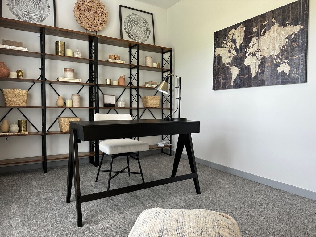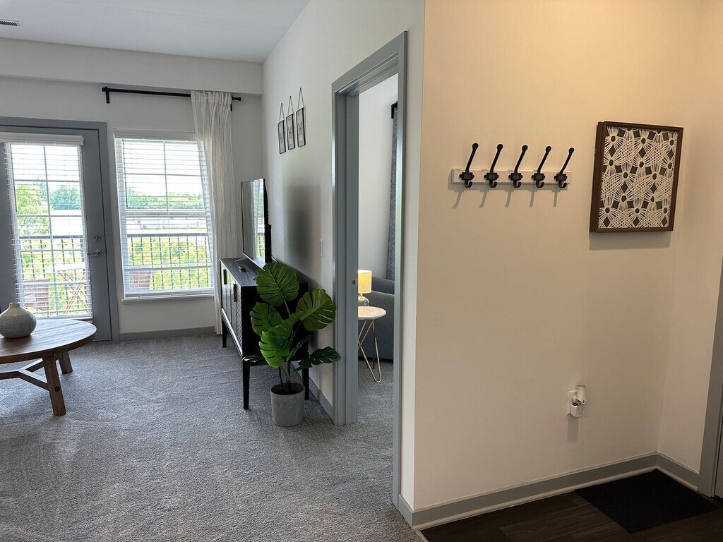 Welcome to this luxury long-stay rental located on the top floor in the Dublin/Hilliard area. Feel at home with super comfy furniture from brands like Arhaus and Pottery Barn, a king-size bed with a new Winkbeds mattress and premium Frette bedding, and a home office. Enjoy fast WiFi at 600+ mbps, generous kitchenware, a 50" smart TV with DirecTV, a balcony with a nature view, and an in-unit washer/dryer. This brand new gated community offers free parking for 2 cars, an indoor pool, and a gym. This apartment features an open-concept floor plan with a spacious living area and kitchen at its center. The master bedroom is located off the living room to the left, while the home office, a room large enough to be a small bedroom, is dedicated entirely to being the ultimate office space. The full bathroom includes everything you need, such as cleaning supplies and a starter supply of toilet paper and toiletries. The balcony is accessible from the living room. This apartment offers free parking for 2 cars and access to an indoor pool and gym. Situated in the Dublin/Hilliard area, you'll love the modern yet peaceful vibe and the amenities of the community and the area in general. This location is ideal for those seeking a serene environment with convenient access to local attractions. This property is located within a 100% smoke-free community, prohibiting smoking of any kind anywhere on the property, including the apartment balcony, building breezeways, and parking lots. No pets are allowed inside this apartment under any circumstances during your stay. This apartment is on the 3rd/top floor, offering peace and quiet with no other apartments above you, but there is no elevator, so only book if you are physically able to climb a few steps. A train passes by this community a few times a day, which may be noticeable to those sensitive to noise. ID verification is required before your arrival, with a quick and easy process to upload a photo of your ID and take a selfie for a background check before receiving check-in details. The home office is a dedicated space large enough to be a small bedroom, providing an ultimate office set-up. [SI]