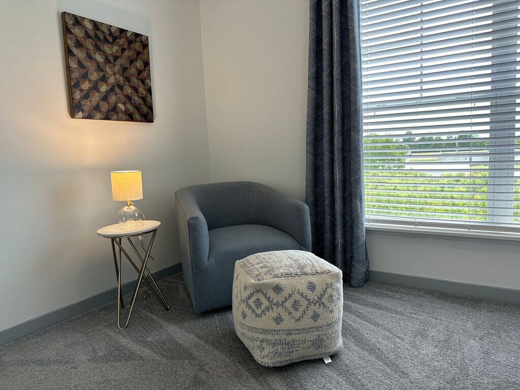 Welcome to The Dublin Designer, a beautifully furnished apartment designed for monthly stays. Situated on the ground floor, this home offers easy access through a breezeway just steps from ample parking. Feel at home with comfortable furniture, including an Arhaus sofa, and a king-size bed with a Winkbeds mattress and Frette linens. Enjoy the convenience of a full-size washer and dryer, a 50" Smart TV with DirecTV, and fast Wi-Fi at 300 Mbps. The apartment also features a private patio with seating and a modern kitchen equipped with kitchenware. Residents have access to an indoor pool and gym. The apartment boasts a bright, open-concept main living area with an entryway featuring coat hooks. The kitchen includes a spacious granite island with bar stools and cabinets stocked with generous kitchenware, a starter supply of cleaning products, and tea/coffee. The living room is furnished with a 50" TV and cozy lamp lighting, leading to a patio with two chairs and a table. The bedroom offers a dreamy king-size bed, Arhaus chest of drawers, an office desk and chair, and two nightstands with lamps and a white noise machine. A large walk-in closet with hangers and racks is also available. The bathroom features a walk-in shower, granite vanity, fresh white towels, and a gift set of Asprey Purple Water toiletries. Pets are welcome with a screenshot of recent vet records, with a maximum of two pets and a combined weight of 75 lbs. No commonly restricted breeds are allowed. Residents have access to an indoor pool and gym. Located in the popular Dublin/Hilliard area within the brand new luxury apartment community, The Kensington At Riggins Run, this apartment offers a peaceful community with plenty of green space. While not walkable to shopping and dining, it is just minutes away by car. Bridge Park and Downtown Dublin are nearby, and other areas of Columbus are easily accessible. Walking trails are abundant for walking, running, rollerblading, and biking. Lyft and Uber are also easily accessible for transportation. This apartment is located within a 100% smoke-free community. No smoking of any kind is permitted anywhere on the community property, including the patio and parking lots. ID verification will be required before your arrival. After booking, a link will be sent to upload a photo of your ID and take a selfie for a quick background check before receiving check-in details. The apartment includes a desk and office chair, providing a comfortable space for remote work. Fast Wi-Fi at 300 Mbps ensures a reliable connection for all your work-from-home needs. [SI]