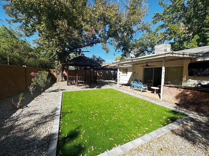 Idyllic mid-century ranch 3 Bedroom 2 bathroom home in the Madison Park subdivision. Interior features a spacious living room, kitchen with stainless steel appliances, laundry room next to a walk-in-pantry and large storage space. The large open backyard is the perfect hangout with a gazebo, a poured slab w/ fire pit for a separate seating area, a BBQ grill and ice chest, and outdoor TV! Rent is $2300 month + tax. Security Deposit equal to one months rent Tenant responsible for utilities: SRP, SWG, City of Phoenix W,S,t Minimum 1 year lease Application fee is $45 per Adult. Apply online at . E-mail property manager for more information on Viewing, Applications, etc. Full service management by Fort Lowell Realty & Property Management, INC. BEWARE: WE DO NOT ADVERTISE ON CRAIGSLIST OR FACEBOOK. Contact us to schedule a showing.
