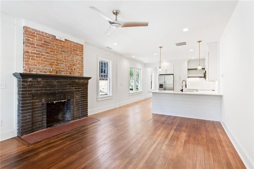 This is your unique opportunity to lease out an original 1920's apartment in Old Fourth Ward. Renovated from top to bottom keeping original features but updates for today's living. 900+ square feet for a 1 bedroom is hard to find. Original hardwoods, covered expansive balcony, extensive renovation throughout with no detail spared. The kitchen features thoughtful timeless finishes, vintage touches in the bathroom, a spacious bedroom, washer/dryer closet. Off street parking in the back.