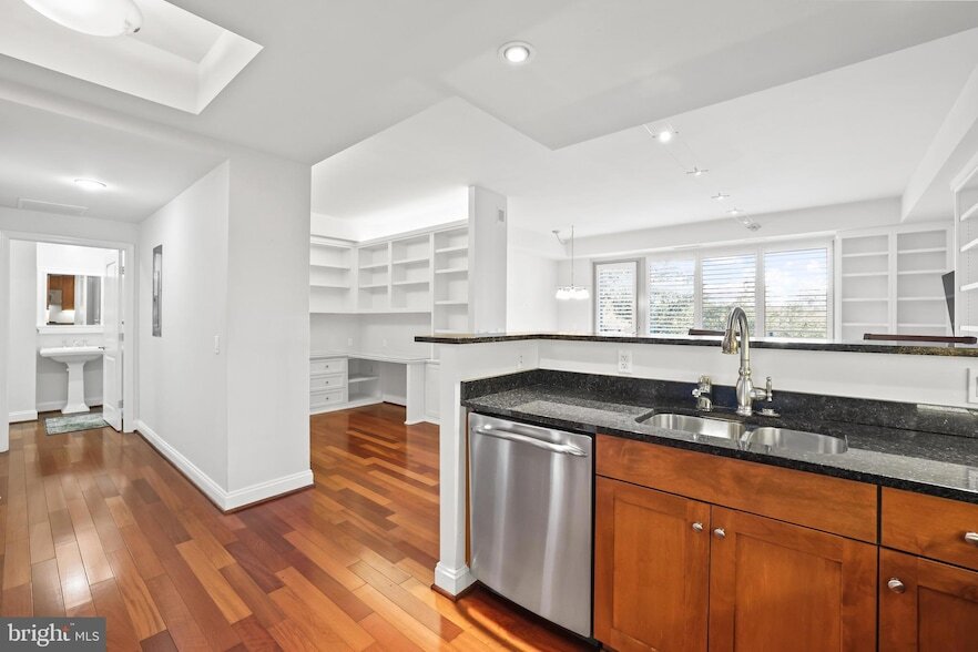 Experience the perfect blend of style and convenience in this spacious 1-bedroom + den, 1.5-bath Blake model located in the luxurious Byron condominium. This light-filled unit features an open and bright floor plan with gleaming hardwood floors and oversized windows that flood the space with natural light.The modern gourmet kitchen is a chef s dream, complete with stainless steel appliances, granite countertops, 42 cabinets, a breakfast bar, recessed lighting, and gas cooking. The bright and airy living room offers built-in book shelving, track lighting, and access to a private balcony ideal for relaxing or entertaining. The generously sized bedroom includes two closets with custom organizers and a stylish en-suite bathroom with a granite-top vanity. A versatile den with built-ins and a convenient half bath complete the layout. Convenient in-unit washer and dryer. Easy parking with 1-car garage parking. Enjoy building amenities: library, meeting room, and landscaped courtyard.Unbeatable location within walking distance to shops, restaurants, the Farmer s Market, and the W&OD Trail. Commuter-friendly with easy access to two Metro stations and major routes including I-66, Rt. 50, I-495, Rt. 7, and Rt. 29.