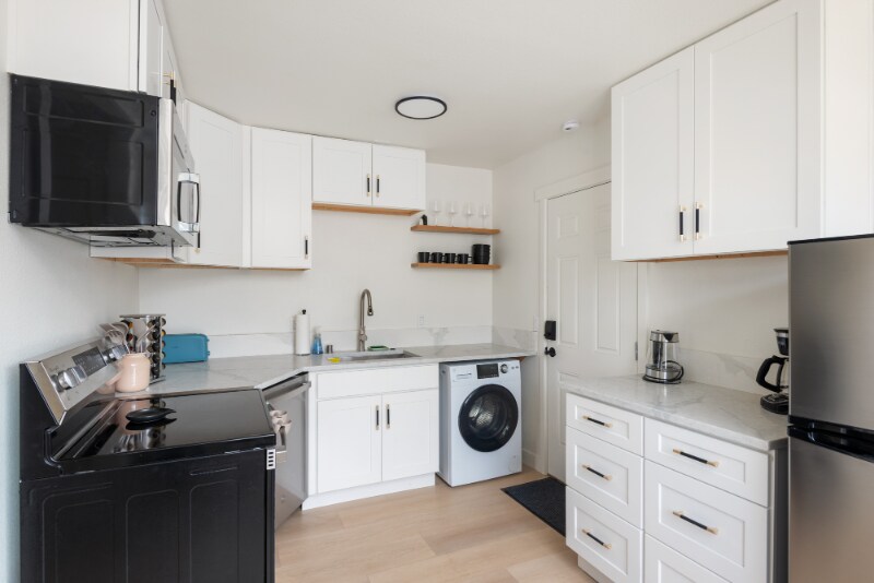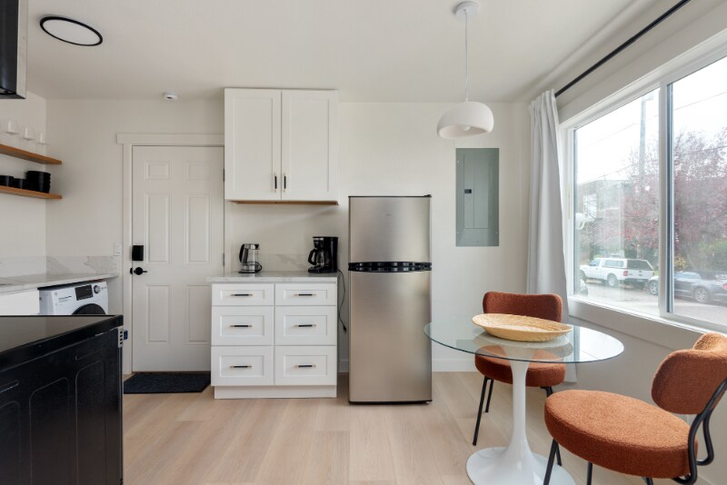 Property Id: 2229763 Quiet and spacious pet friendly home featuring modern amenities while being just a few blocks from beautiful Alberta Park to the North and a few blocks from the finest dining, shopping, and nightlife the Alberta Arts district has to offer to the South. Plenty of room to spread out in this midcentury inspired getaway. Enjoy the spacious living room, king bedroom, off suite bathroom and a fully equipped kitchen. Also includes free covered off street parking and a fenced in dog run on property. Free in unit laundry. The Alberta Arts District is one of the most desirable neighborhoods in all of Portland. Very walkable with frequent transit services as well as easy interstate access. Walk to a diverse selection of shopping, dining and nightlife options.
