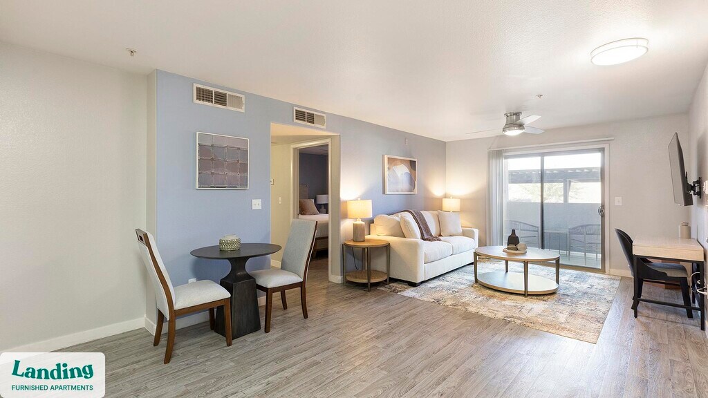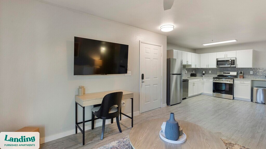 Landing offers flexible lease terms from weeks to months. Please always visit our website or contact us for the latest pricing & availability. Stay longer, save more: 6-Month Minimum base rent: starts at $2105/mo 12-Month Minimum base rent: starts at $1743/mo Landing offers flexible leases across a network of over 35,000 fully-furnished apartments throughout 375+ cities so you can rent on your terms, practically anywhere, and avoid the hassle of paying deposits or application fees. Visit to learn about all the benefits of a Landing membership, see our competitive up-to-date pricing, explore available apartments, take virtual tours, and make reservations online without jumping through traditional rental hoops. Landing's apartments at The Allister are designed for comfortable, easy living, with the ability to stay as long as you like. Experience living with Landing Every apartment is outfitted with all the modern essentials including: custom-designed furnishings, a fully-equipped kitchen with deluxe stainless steel appliances, a gourmet coffee maker, premium linens, Smart TVs, and incredibly fast, reliable internet for working from home. When you live with Landing, you'll enjoy a hassle-free experience with the added benefit of 24/7 access to our dedicated member experience team. Some of the nitty-gritty: a background check and proof of income are required; we're completely smoke-free; bundled utility packages and pricing vary based on length of stay; pet-friendly options available; listed price reflects a 12-month minimum stay.