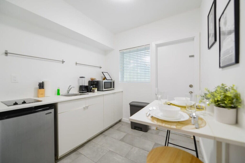 Located in the Upper East Side District, this apartment places you just steps away from a variety of restaurants, shopping centers, and major attractions. With Wynwood only 15 minutes away, Miami Design District about 11 minutes, and Brickell around 25 minutes, you'll be perfectly positioned to explore the best of Miami. Miami International Airport is conveniently just about 16 minutes away. Enjoy a swim at North Beach, only 15 minutes away, or take a 9-minute ride to Morningside Park for some peace and quiet. The apartment is ready for your comfortable stay, nicely furnished to make you feel at home. It features a stylish and concise design with a queen-size bed and TV in the bedroom area, one bathroom, and offers free shared Wi-Fi, perfect for browsing and streaming your favorite shows. Limited parking space is available outside the building on a first-come, first-served basis, and paid street parking is also available. The studio is located in the quiet Upper East Side, or MiMo (Miami Modern) District, surrounded by other small townhouses. You'll find plenty of stores, restaurants, and fast-food places like McDonald's, Subway, and Domino's Pizza within walking distance. For transportation, there's a bus stop on Biscayne Blvd, or you can use platforms like Uber and Lyft. Smoking is not allowed inside the apartment and may lead to a fine. Please avoid excessive noise as the property is located in a residential area. Check-in time is at 16:00 and check-out time is at 11:00. Late check-out is available for an additional cost if requested 24 hours in advance. Package deliveries to the property address are not allowed, and washcloths are not provided. In case of any lost linens or apartment keys, an additional cost will be charged to replace them. Remember to turn off the air conditioning when leaving to maintain a comfortable environment for everyone. The Wi-Fi provided is of standard speed, ideal for basic browsing and streaming, but may not be suitable for remote work or tasks requiring high-speed internet. [SI]