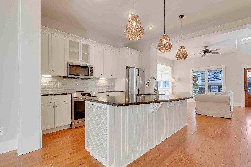 Property Id: 1653167 Historic charm meets modern comfort in this fully updated 2-bed, 2-bath bungalow in Raleigh's Warehouse District. On a picturesque block footsteps to Boylan Heights, Dix Park, Red Hat, Convention Center, top-rated restaurants and shops, plus all of Raleigh's best festivals & events. The spacious front porch is the perfect place to sit and relax while still feeing connecting to the bustling eclectic energy of downtown living. Kitchen boasts an oversized island & induction stove, vaulted ceilings & stained glass found in primary plus backyard access, decorative fireplace in the second bedroom. 10-foot ceilings throughout, Moroccan light fixture casts stunning shadows in dining room, light drenched sunroom off living room. Double French doors open for seamless indoor-outdoor flow to back deck and secluded fenced in backyard. Coveted off-street parking for 2 cars. A truly charming and sophisticated gem in the heart of Raleigh! 3x income, 650+ credit score, & renters insurance required.