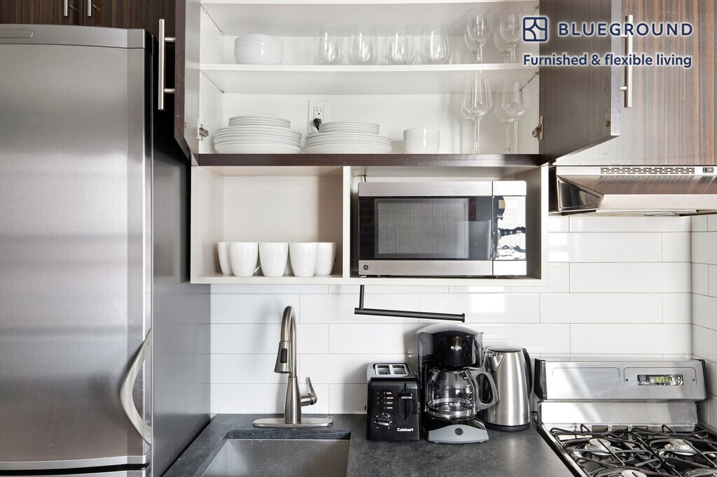 Discover the best of New York, with this two bedroom apartment in Hell's Kitchen. It’ll be easy to simply show up and start living in this elegantly furnished apartment with its fully equipped kitchen, beautiful living room, and our dedicated, on-the-ground support. (ID #NYC1923) The advertised rate of $4,970/month is the lowest available price, based on a 12 month(s) stay with a move-in date of March 2, 2026. Rates vary depending on the duration of stay, season, and other parameters. For exact pricing and additional pricing components, please visit our website and enter your desired move-in and move-out dates. The rate is applicable when billed upfront; it can be higher if billed in multiple payments. Brokers are welcome to reach out. Were you looking for an unfurnished lease? Try Blueground instead and upgrade from unfurnished to furnished living: - Furnished at rates comparable to unfurnished - No setup or furniture costs - save thousands - Move-in ready - save time, just bring your suitcase Designed with you in mind Thoughtfully designed with bespoke finishes, modern furnishings, and a fully equipped kitchen, you’ll enjoy that “I’m home” feeling with this Blueground apartment. Whether you’re lounging in your sophisticated living room streaming the latest and greatest entertainment on the smart TV or premium wireless speaker, or getting some well-earned rest on the superior quality mattress with luxury linens, you’ll fall in love with everything this Hell's Kitchen apartment has to offer. This apartment also offers in-apartment laundry. Sleeping arrangements Queen Bed, 63in/160cm Queen Bed, 63in/160cm Amenities Building amenities unique to this two bedroom apartment include an on-site: - Dryer - Washing machine Arrival and ongoing support The entire apartment is yours to enjoy! Throughout your stay, you’ll have access to our Client Experience team through the Blueground App. You can schedule additional cleanings, submit maintenance requests, and view our neighborhood recommendations with just a few taps. We’ll share all details upon confirmation of your stay. Other things to note This Blueground apartment has flexible lease options, allowing you to book it for one month, a year, or more. Please keep in mind that this is a walk up building. Brokes CYOF. We take great pride in ensuring every photo displayed is shot in our own units with our actual furnishings. That said, we regularly refresh our decor and furniture arrangement, which may differ from what’s pictured. [SI]