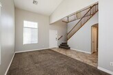 Please note, our homes are available on a first-come, first-serve basis and are not reserved until the holding fee agreement is signed and the holding fee is paid by the primary applicant. This home features Progress Smart Home - Progress Residential's smart home app, which allows you to control the home securely from any of your devices. Learn more at Coming soon! This home is currently being enjoyed by another resident but will be available soon. Please respect their privacy and do not disturb. You can complete the application process and reserve this home for a $500 non-refundable holding fee until it's ready for move-in. This fee must be paid within 24 hours of being pre-qualified and will be applied to your first month’s rent if you enter into a lease for this home. A large, partially covered backyard patio is a great space to entertain at this four-bedroom, three-bathroom rental home in North Las Vegas, Nevada. The carpeted combo living room/dining room area has a high ceiling that provides a spacious feel. Windows at each end and a side-facing window stream sunshine into the area. The upstairs carpeted main bedroom has windowed sliding doors revealing a walk-in closet for convenient storage. Another walk-in closet with windowed sliding doors is in the en suite bathroom, offering additional storage for clothing, toiletries, and linens. You'll also find a dual-sink vanity with cabinets and drawers, a walk-in shower, and a tub. Schedule a time now to tour this rental home.