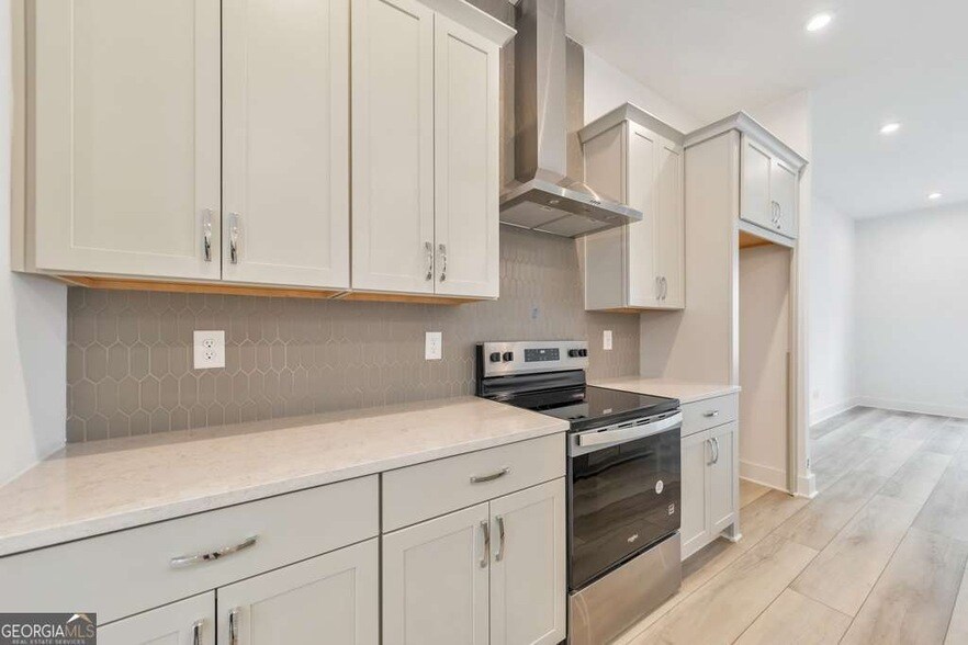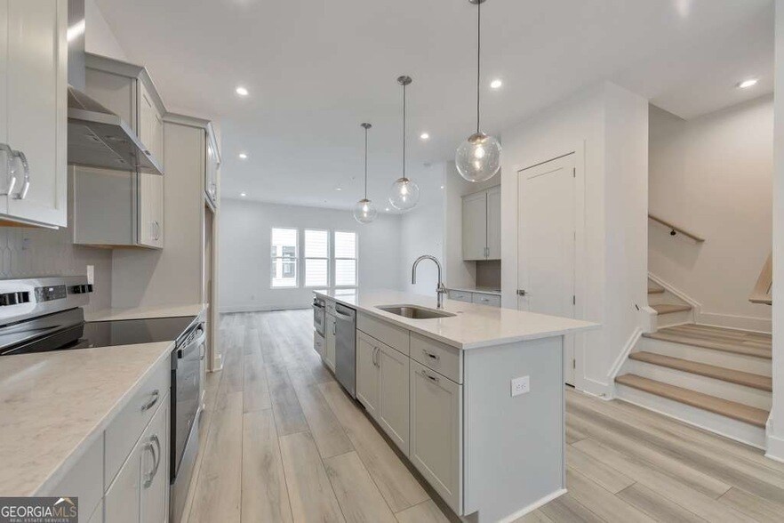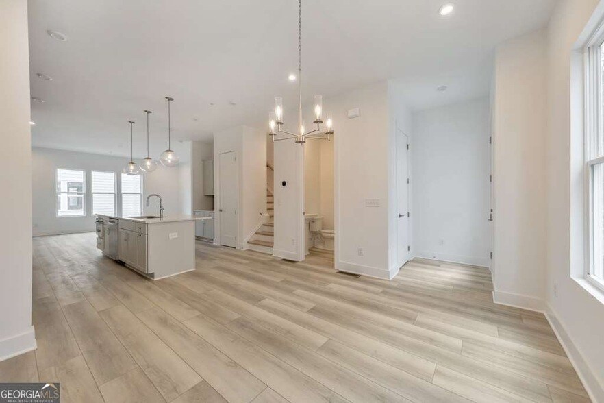 Welcome to this beautiful and modern 4 bedroom / 4.5 bathroom townhome for rent, perfectly situated in the heart of Atlanta. Built in 2025, this impressive 4-story home offers an airy main level with an open layout. The dining area flows seamlessly into the contemporary kitchen, complete with stone countertops, stainless steel appliances, a large island with bar seating, and a pantry. A comfortable living room and a half bath round out the main floor. The primary suite is located on the upper level and features a generous walk-in closet plus a stylish ensuite with double vanities and a sleek glass shower. You'll also find a secondary bedroom with its own private bathroom, as well as the laundry room on this floor. Head to the top level for another secondary bedroom and full bath, along with a large loft that leads to a private rooftop deck offering both privacy and skyline views. The lower level provides an additional secondary bedroom suite and easy access to the 2-car garage. Enjoy unbeatable convenience just minutes from Atlantic Station, where you'll find premier shopping, dining, entertainment, and easy access to major highways. 650+ credit score and 3x monthly rent in income required. Tenant responsible for electric and water. 1 small dog allowed with $500 nonrefundable deposit. One months rent security deposit. Unfurnished.