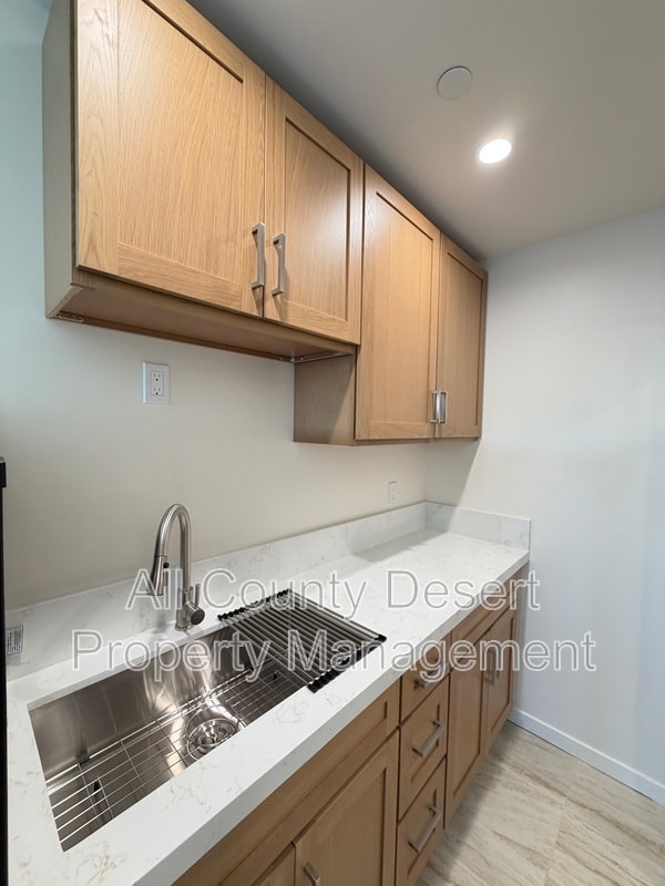 Welcome to this newly constructed, modern 5-plex studio apartment unit! Enjoy the desert setting with visible palm trees and mountain views. This cozy apartment features expansive large-format, marble-look tile flooring and recessed lighting. Kitchenette with sink, microwave, and refrigerator. Solar panels ensure energy efficiency. Residents to pay 50% of any electrical overage. 1 assigned off street parking space per unit. Additional street parking available. Trash, water and front landscaping only included in the rent. Residents are responsible to maintain their own patio areas. All applicants must pass a comprehensive background screening including income verification and landlord references. Renter's insurance is required. All applicants must have the following: monthly income of at least 3 times the monthly rent, a good rental history, and an acceptable credit score. If you see this home advertised online for less than the rental amount quoted here, the ad is a SCAM. We are the only authorized agent for this property. Please email us a link to any bogus or fraudulent ads so we can report it to the appropriate authorities. Please do NOT send money to anyone who offers keys in exchange for a deposit check - especially if they are out of state. When in doubt, please feel free to contact us.