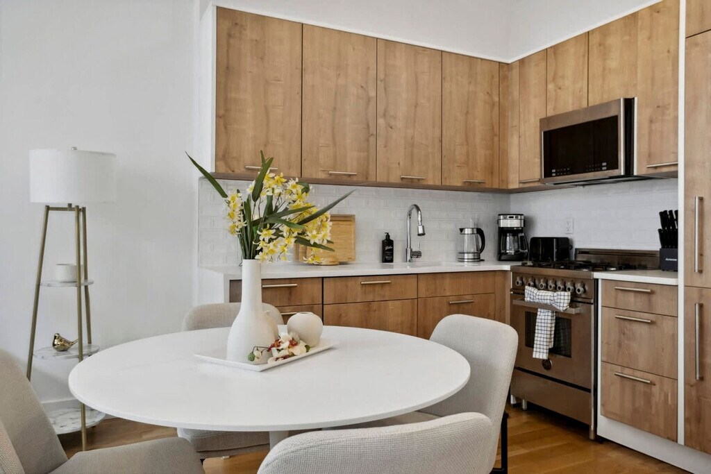 The advertised rate of $5,865/month is the lowest available price, based on a 1 month(s) stay with a move-in date of September 4, 2026. Rates vary depending on the duration of stay, season, and other parameters. For exact pricing and additional pricing components, please visit our website and enter your desired move-in and move-out dates. The rate is applicable when billed upfront; it can be higher if billed in multiple payments. Feel at home in this stylish, newly renovated 1-bedroom apartment located in the heart of Midtown West, Manhattan. Situated in a secure elevator building with a convenient on-site laundry room, this apartment offers a modern kitchen, cozy living space, and a quiet bedroom—perfect for work or relaxation. Just steps from Times Square, theaters, dining, and public transit, it is ideal for business travelers or city explorers seeking comfort and convenience in a prime location. Welcome to your Midtown West retreat! This 1-bedroom apartment provides a serene escape with a beautifully designed bathroom featuring a deep soaking tub—perfect for unwinding after a day in the city. Enjoy your favorite shows on the large smart TV with high-speed internet for streaming or work. The fully equipped kitchen has everything you need to cook and dine at home. Comfortable, modern, and thoughtfully designed, this space is your ideal home base in Manhattan. High-speed WiFi and air conditioning are available in the apartment. Laundry facilities are available in the building. Located in Midtown Manhattan, you'll be surrounded by trendy restaurants, bars, and shops. A short walk will bring you to the Hudson River, Theater District, and Times Square. This apartment is just 2 blocks from all major subway lines, offering quick access to anywhere in the city, including the A, C, E trains at 44th St & 8th Ave and the N, R, W, Q, 1, 2, 3, 7 trains at Times Square. [SI]